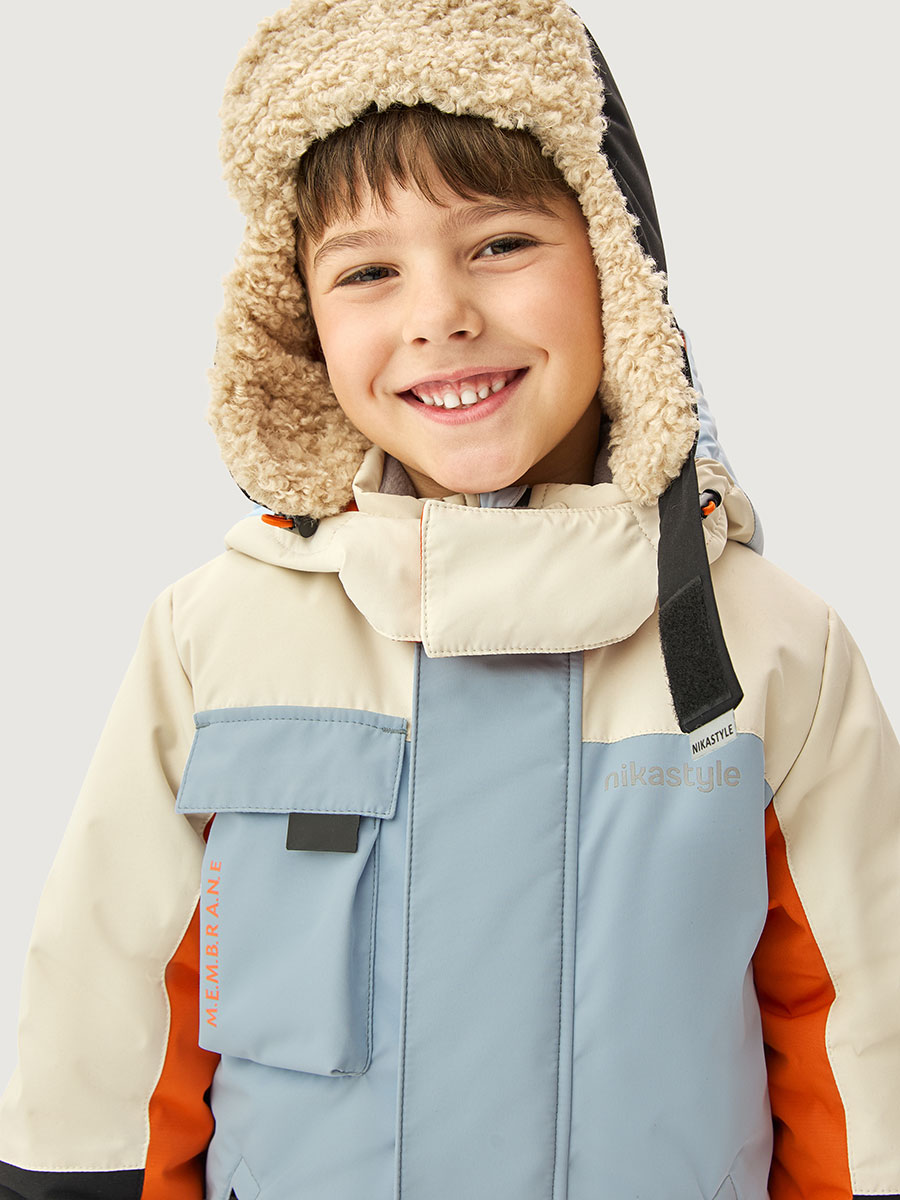 Мембранная ткань это не продуваемый и водонепроницаемый материал, который надежно защищает от ветра и влаги. Благодаря дышащим свойствам мембраны ребенку будет комфортно в любую погоду и он не вспотеет. Ткань обработана снаружи экологически чистым протектором TEFLON для защиты от воды и грязи.