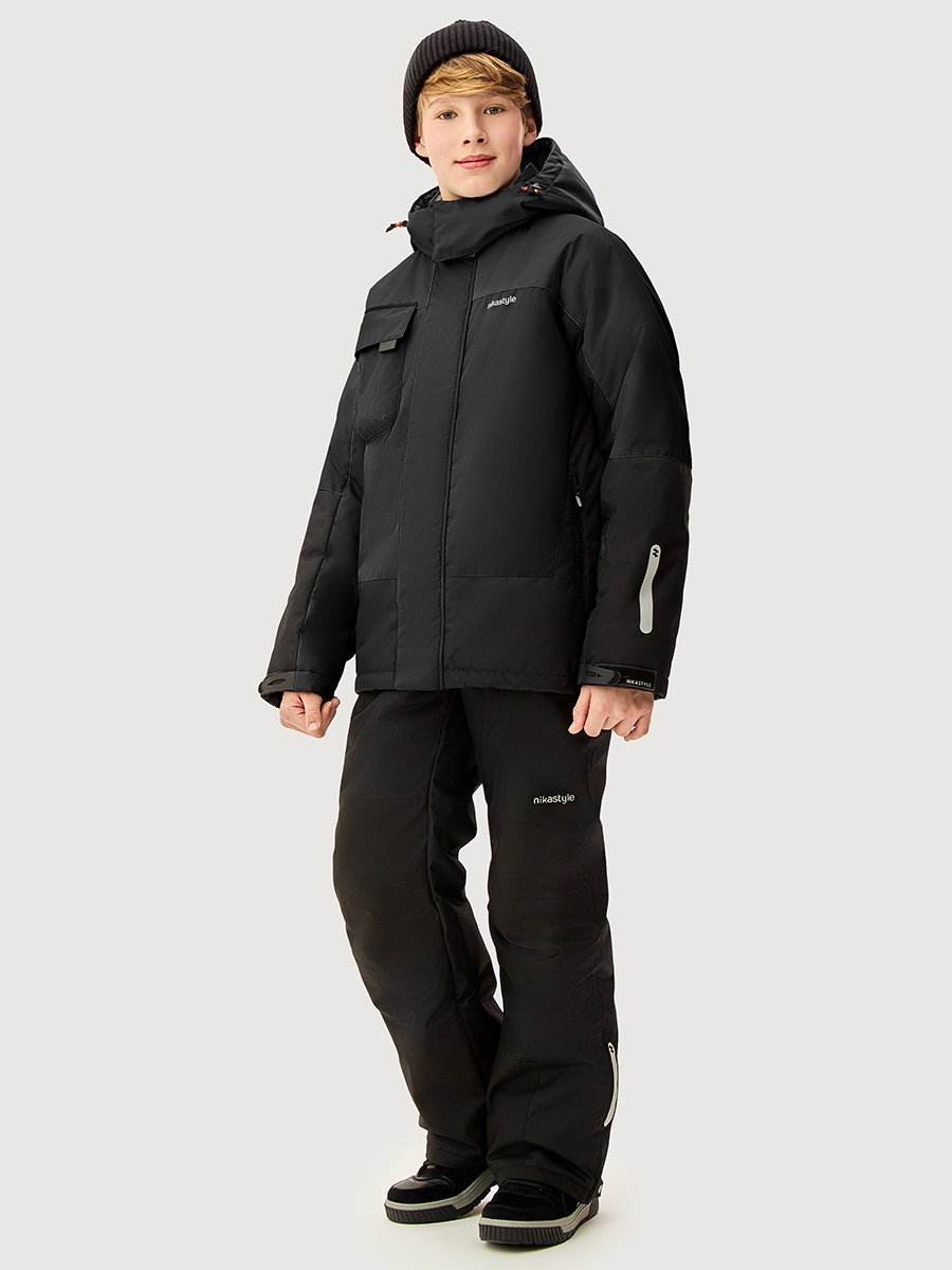 Функционал: центральная застежка и карманы на молнии, накладной карман с клапаном, внутренний карман на молнии, ветрозащитная планка, съемный капюшон на молнии, кулиса для регулировки объема по капюшону и низу куртки, трикотажные манжеты в рукавах, карман на рукаве под ски-пасс, регулировка ширины низа рукава, внутренние бретели для возможности снять куртку в помещении, снегозащитная юбка. Мы все продумали до мелочей, поэтому брюки дополнительно оснащены регулируемыми бретелями и отстегивающейся спинкой, удобными карманами. Область колен и шов сидения проклеены, места повышенного трения выполнены из особо прочной ткани, снегозащитные муфты, регулировка объема брюк под обувь на молнии, флисовая подкладка до середины бедра, светоотражающие элементы для безопасности ребенка в темное время суток. Комфортная температура эксплуатации от 0°С до -25°С.