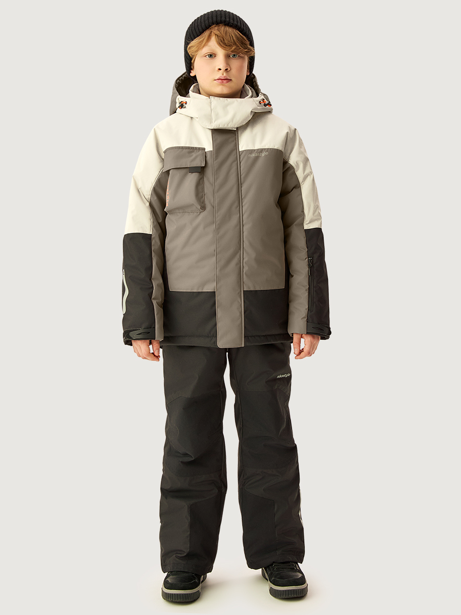 Функционал: центральная застежка и карманы на молнии, накладной карман с клапаном, внутренний карман на молнии, ветрозащитная планка, съемный капюшон на молнии, кулиса для регулировки объема по капюшону и низу куртки, трикотажные манжеты в рукавах, карман на рукаве под ски-пасс, регулировка ширины низа рукава, внутренние бретели для возможности снять куртку в помещении, снегозащитная юбка. Мы все продумали до мелочей, поэтому брюки дополнительно оснащены регулируемыми бретелями и отстегивающейся спинкой, удобными карманами. Область колен и шов сидения проклеены, места повышенного трения выполнены из особо прочной ткани, снегозащитные муфты, регулировка объема брюк под обувь на молнии, флисовая подкладка до середины бедра, светоотражающие элементы для безопасности ребенка в темное время суток. Комфортная температура эксплуатации от 0°С до -25°С.