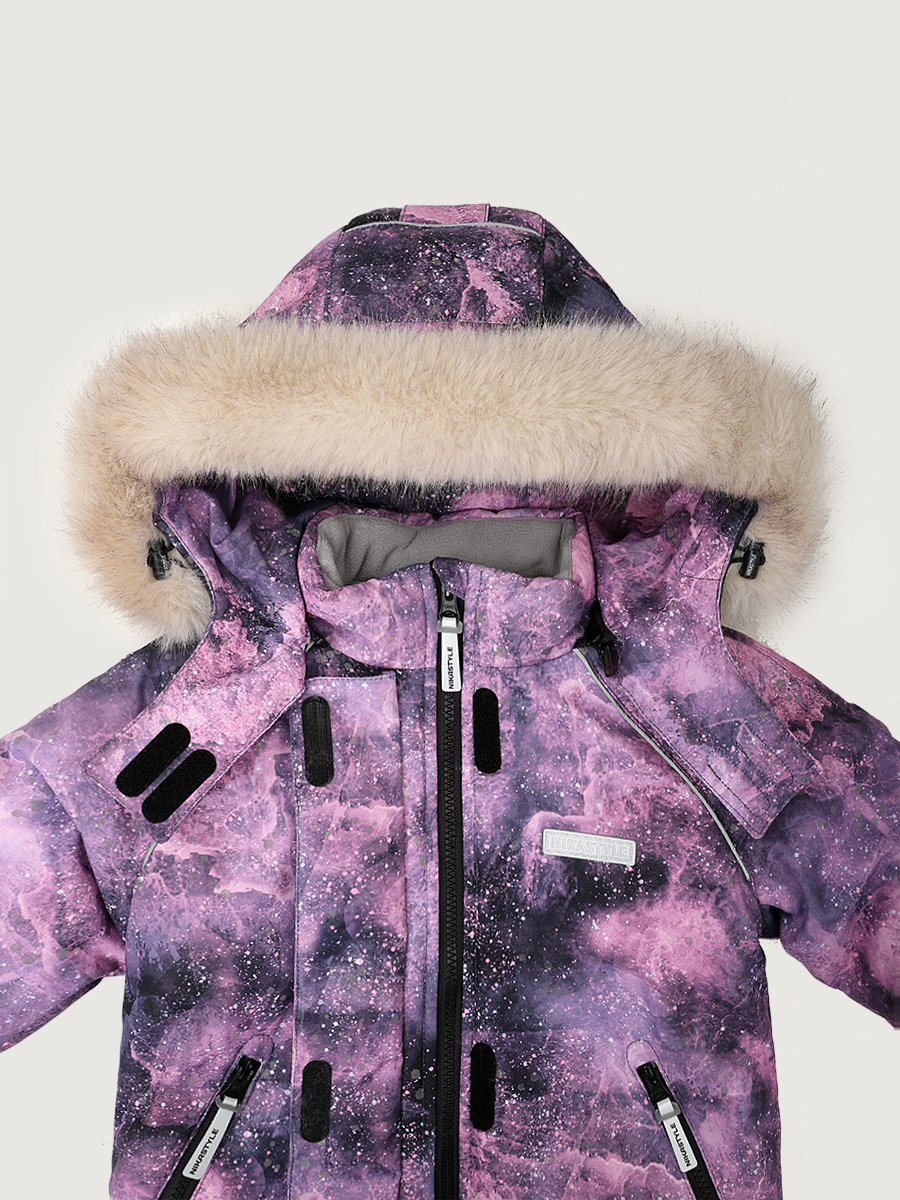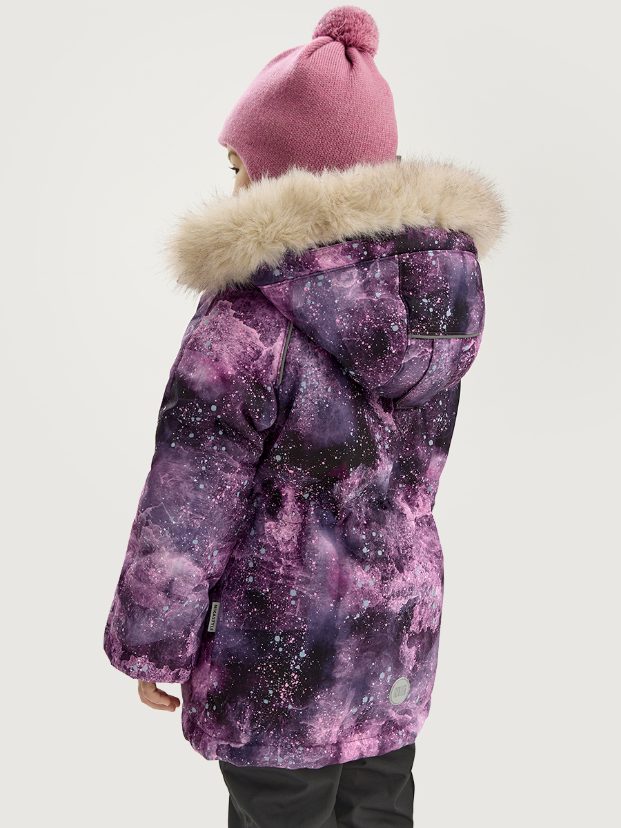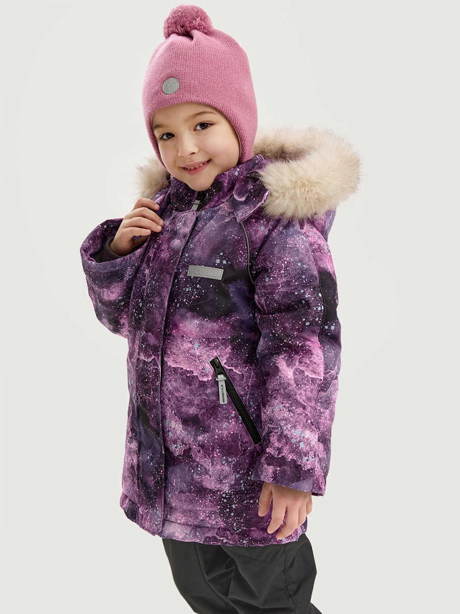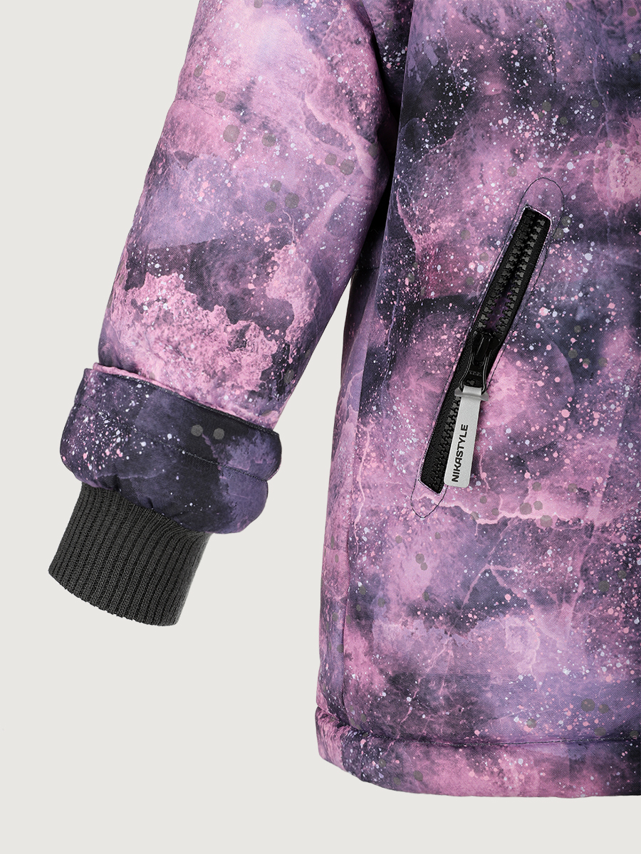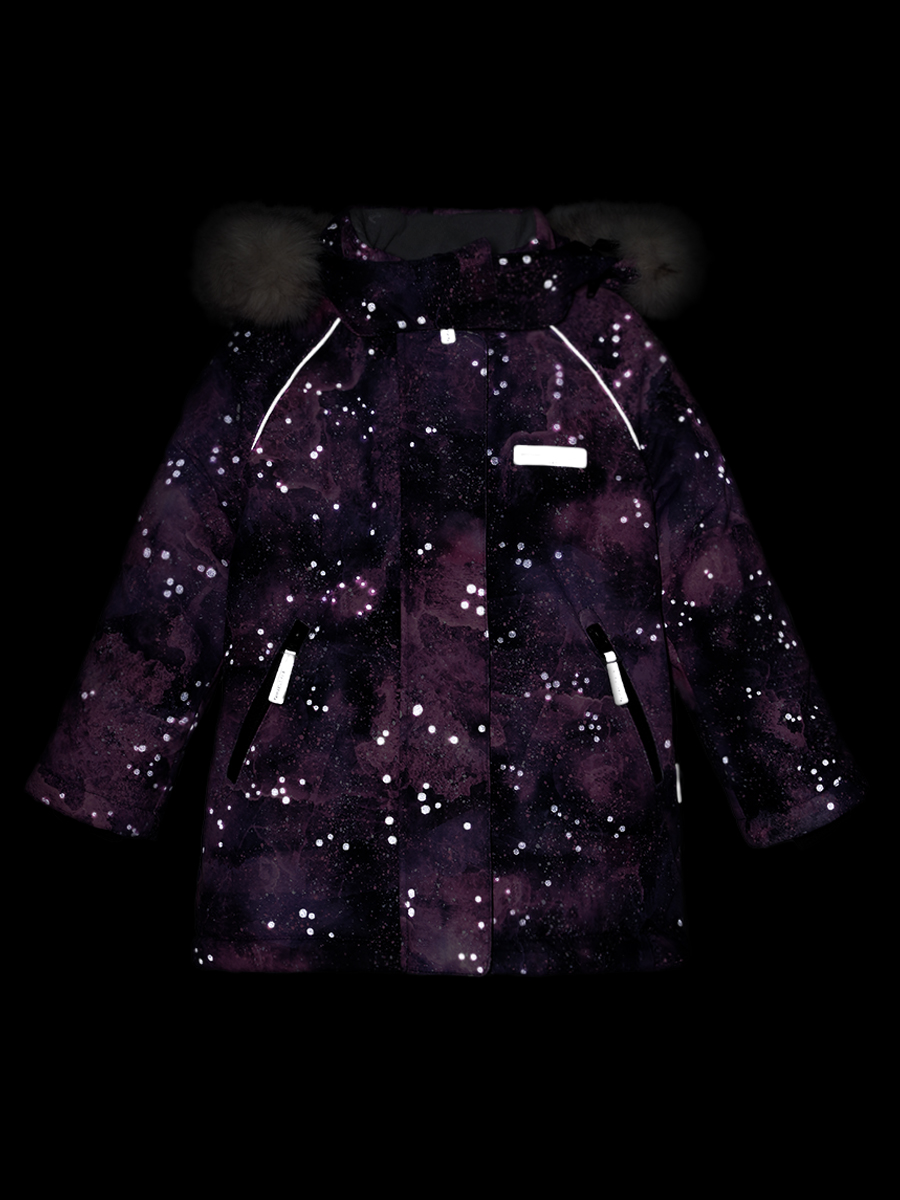 Куртка ВСЕЛЕННАЯ из мембранной ткани 5000/5000 с водо- грязеотталкивающей технологией TEFLON. Мембранная ткань это непродуваемый и водонепроницаемый материал, который надежно защищает от ветра и влаги. Благодаря дышащим свойствам мембраны ребенку будет комфортно в любую погоду и он не вспотеет. Дополнительно на ткань нанесен светоотражающий принт. Ткань обработана снаружи экологически чистым протектором TEFLON для защиты от воды и грязи.