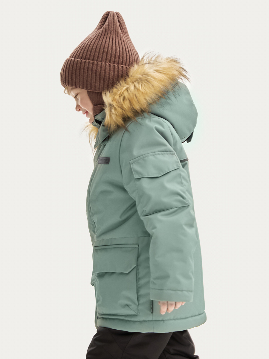Зимняя продуманная куртка ПАРКА с удобной застежкой на магнитные кнопки клапанов карманов и уступов капюшона. Куртка из мембранной ткани 5000/5000 с водо- грязеотталкивающей технологией TEFLON. Мембранная ткань это непродуваемый и водонепроницаемый материал, который надежно защищает от ветра и влаги. Благодаря дышащим свойствам мембраны ребенку будет комфортно в любую погоду и он не вспотеет. Ткань обработана снаружи экологически чистым протектором TEFLON для защиты от воды и грязи.