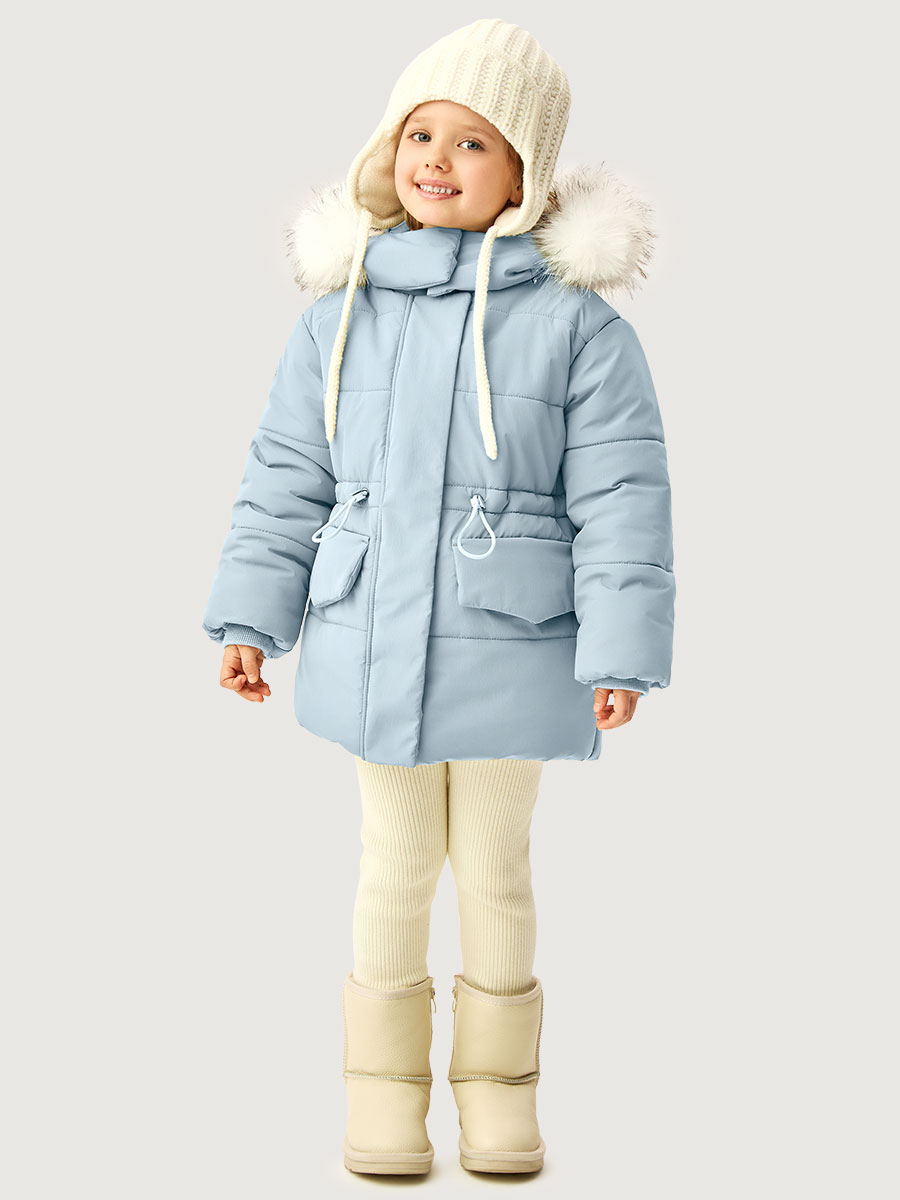 Функционал: центральная застежка на молнии, карманы с клапанами на магнитных кнопках, ветрозащитная планка на кнопках, съемный капюшон на молнии, съемная меховая опушка на кнопках, кулиса для регулировки объема по капюшону и по талии, эластичная резинка по низу рукава.