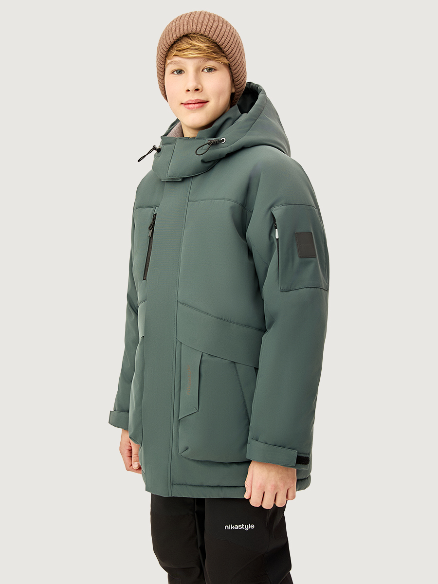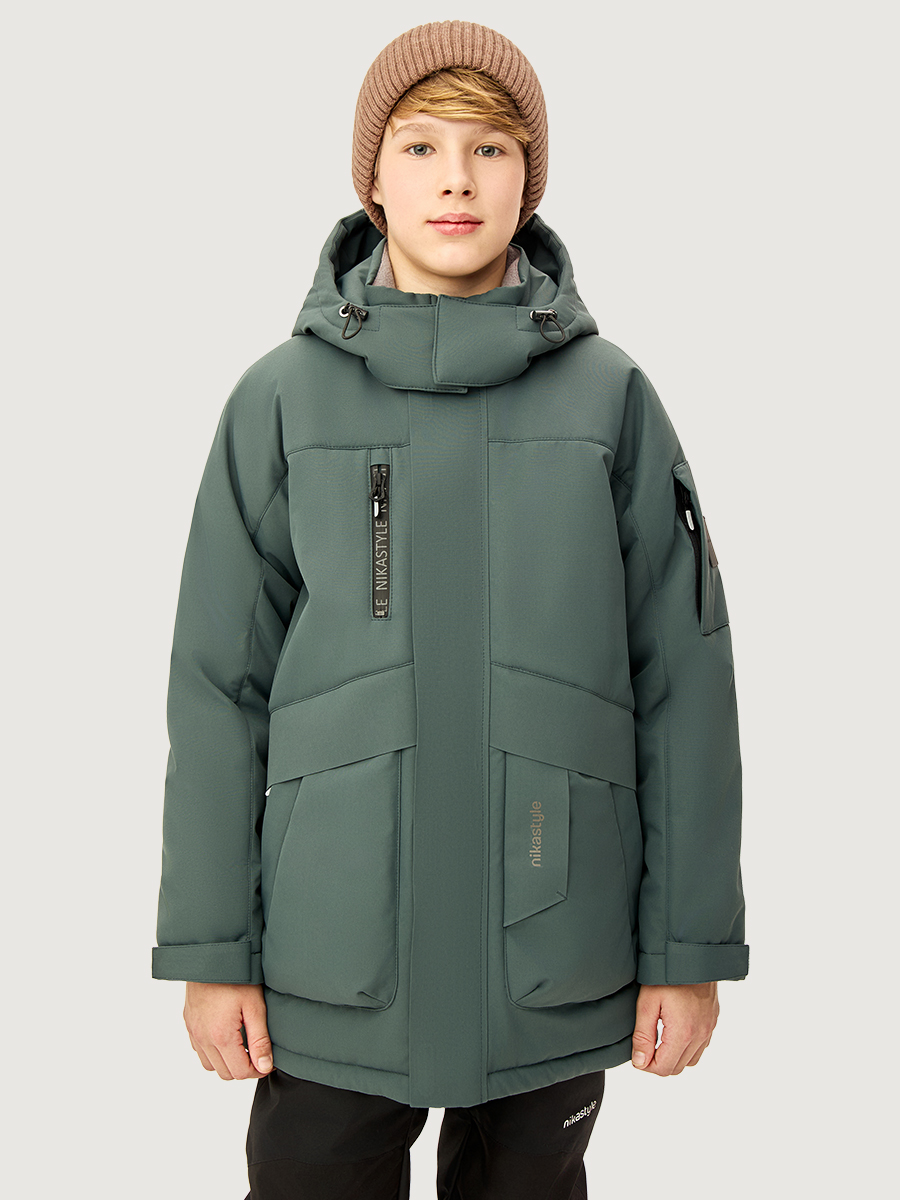 Функционал: центральная застежка на молнии, верхний и внутренний карман на молнии, карман на рукаве на молнии, накладные карманы с двойным входом: верхний с клапаном и боковой на молнии, ветрозащитная планка, съемный капюшон на молнии, кулиса для регулировки объема по капюшону и низу куртки.