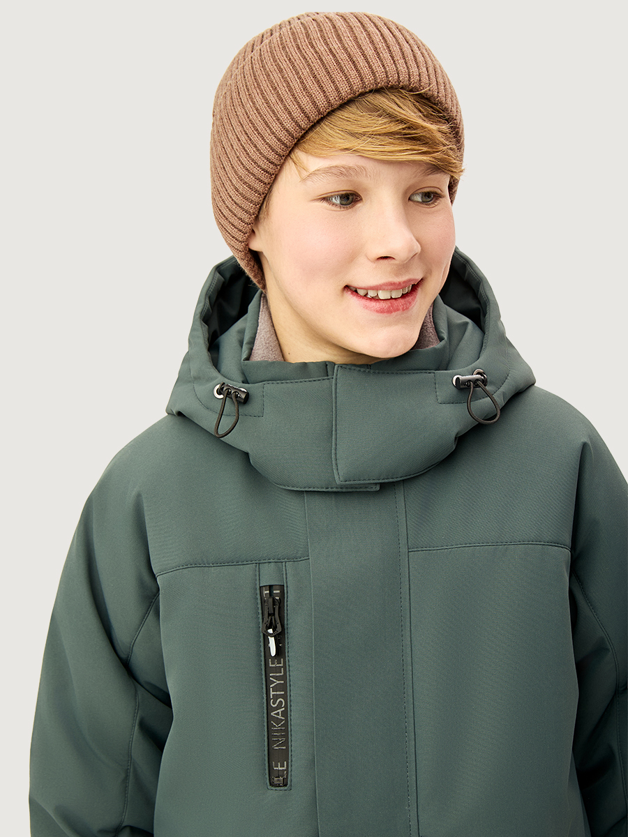 Мембранная ткань это непродуваемый и водонепроницаемый материал, который надежно защищает от ветра и влаги. Благодаря дышащим свойствам мембраны ребенку будет комфортно в любую погоду и он не вспотеет. Ткань обработана снаружи экологически чистым протектором TEFLON для защиты от воды и грязи.