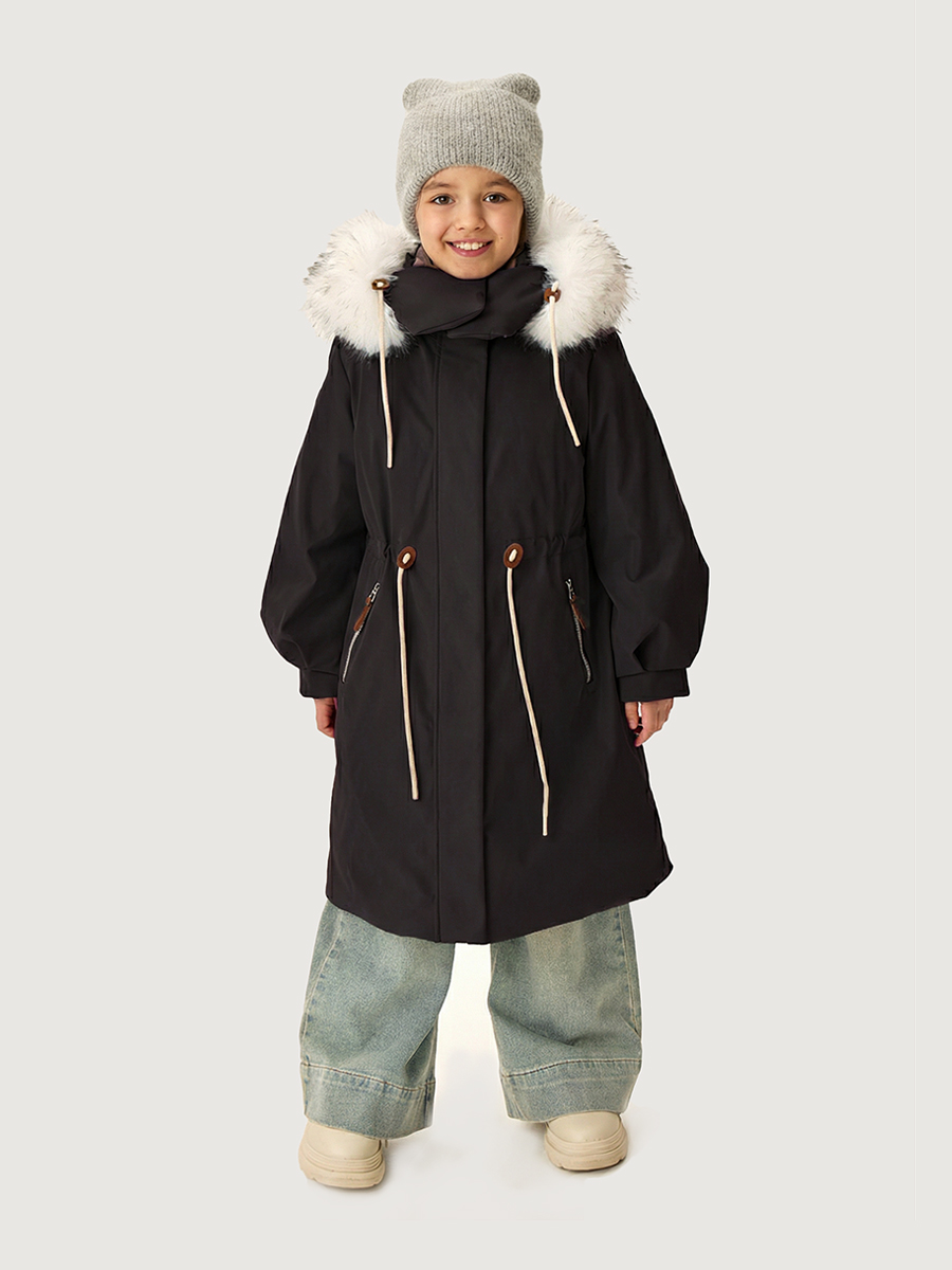 Удлиненная зимняя парка ЯКУТИЯ для девочки в трендовых цветах с удобными застежками капюшона на магнитные кнопки.