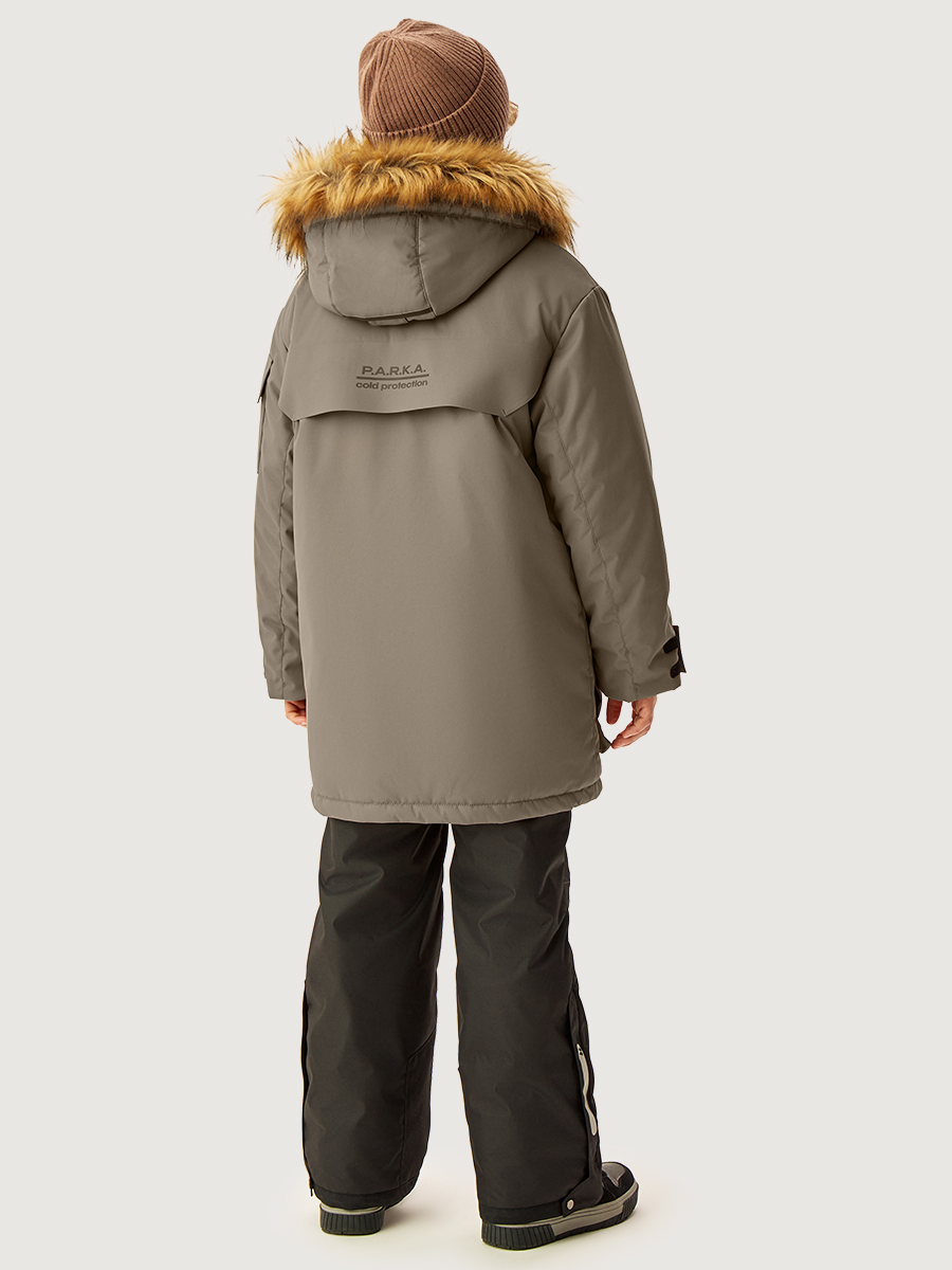 Мембранная ткань это непродуваемый и водонепроницаемый материал, который надежно защищает от ветра и влаги. Благодаря дышащим свойствам мембраны ребенку будет комфортно в любую погоду и он не вспотеет. Ткань обработана снаружи экологически чистым протектором TEFLON для защиты от воды и грязи.