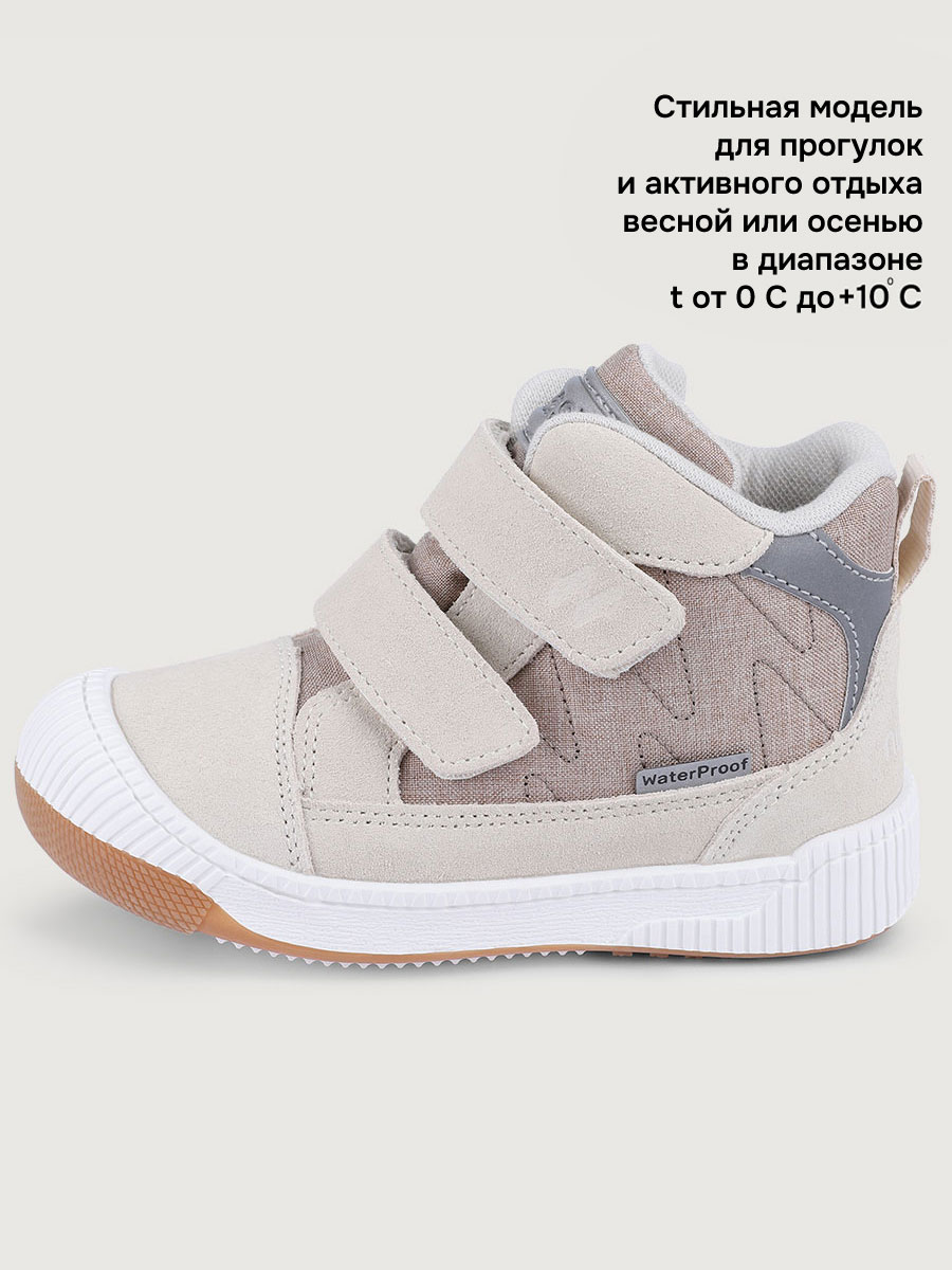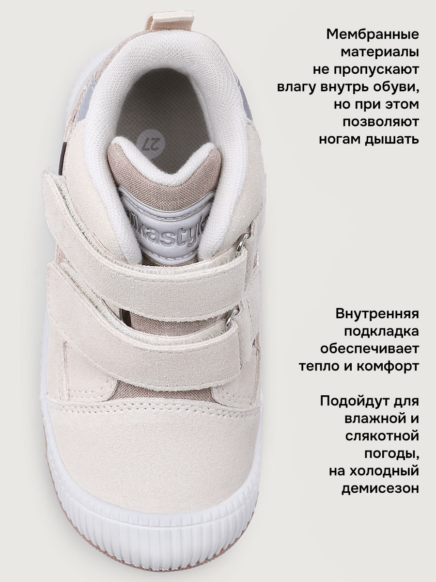 Технология WATERPROOF с использованием мембранных материалов не пропускает влагу внутрь обуви, но позволяет ногам дышать и подойдет для влажной и слякотной погоды. Внутренняя подкладка из хлопка обеспечивает тепло и комфорт, что особенно актуально в холодное время года. Анатомическая форма стельки способствует правильному формированию свода стопы, равномерно распределяет нагрузку, уменьшает усталость, обеспечивает правильное развитие стоп.