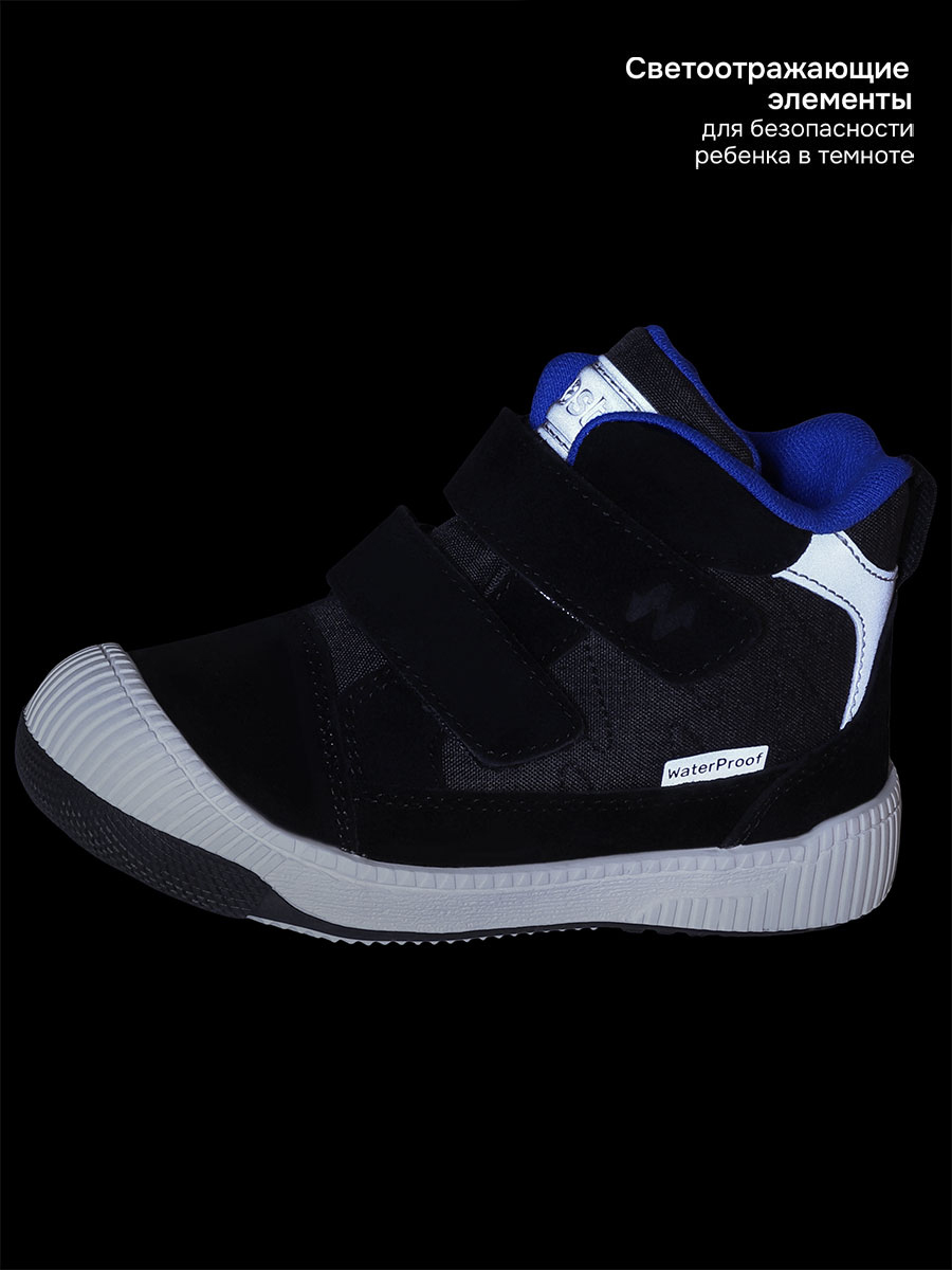 Технология WATERPROOF с использованием мембранных материалов, которые не пропускают влагу внутрь обуви, но позволяют ногам дышать и подойдут для влажной и слякотной погоды. Внутренняя подкладка из хлопка обеспечивает тепло и комфорт, что особенно актуально в холодное время года. Анатомическая форма стельки способствует правильному формированию свода стопы, равномерно распределяет нагрузку, уменьшает усталость, обеспечивает правильное развитие стоп. Эти ботинки ребенок легко обует самостоятельно, так как липучка обеспечивают легкое одевание и позволяет точно настроить полноту. Подошва с протектором выполнена из термопластичной резины (TPR), обладает высокой износостойкостью и хорошей амортизацией, уменьшая нагрузку на ноги. Наличие светоотражающих элементов для безопасности ребенка в темное время суток.