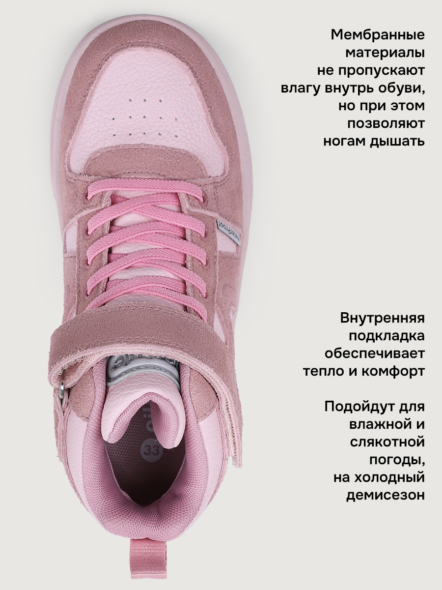 Технология WATERPROOF с использованием мембранных материалов не пропускает влагу внутрь обуви, но позволяет ногам дышать и подойдут для влажной и слякотной погоды. Внутренняя подкладка обеспечивает тепло и комфорт, что особенно актуально в холодное время года. Анатомическая форма стельки способствует правильному формированию свода стопы, равномерно распределяет нагрузку, уменьшает усталость, обеспечивает правильное развитие стоп.