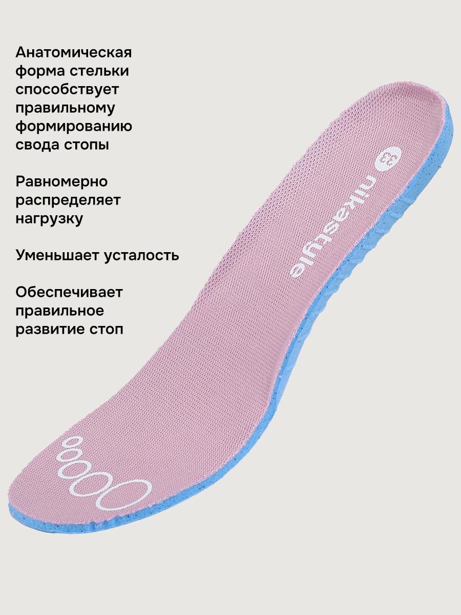 Ботинки оснащены съемной стелькой со специальной маркировкой, позволяющей правильно подобрать размер. Рекомендуем вынуть стельку и приложить к ней ногу ребенка - пальцы должны располагаться в обозначенной для этого области. При выборе обуви для ребенка, длина стельки должна быть примерно на 1-1,5 см больше, чем длина стопы.