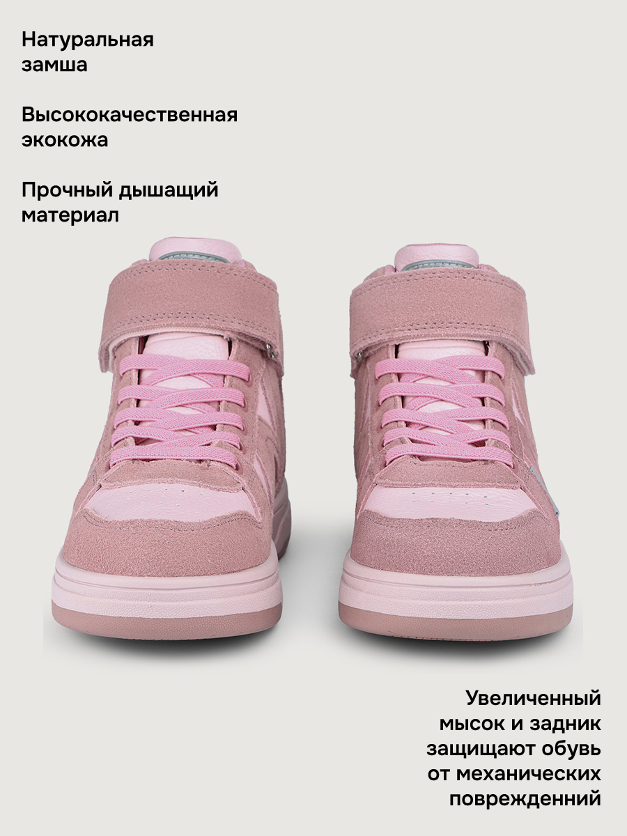 Липучка и эластичные шнурки позволяют точно настроить полноту и обеспечивают легкое одевание. Ботинки имеют спортивный дизайн, что делает их универсальными для школы и спортивных мероприятий. Подошва с протектором выполнена из термопластичной резины (TPR), обладает высокой износостойкостью и хорошей амортизацией, уменьшая нагрузку на ноги.