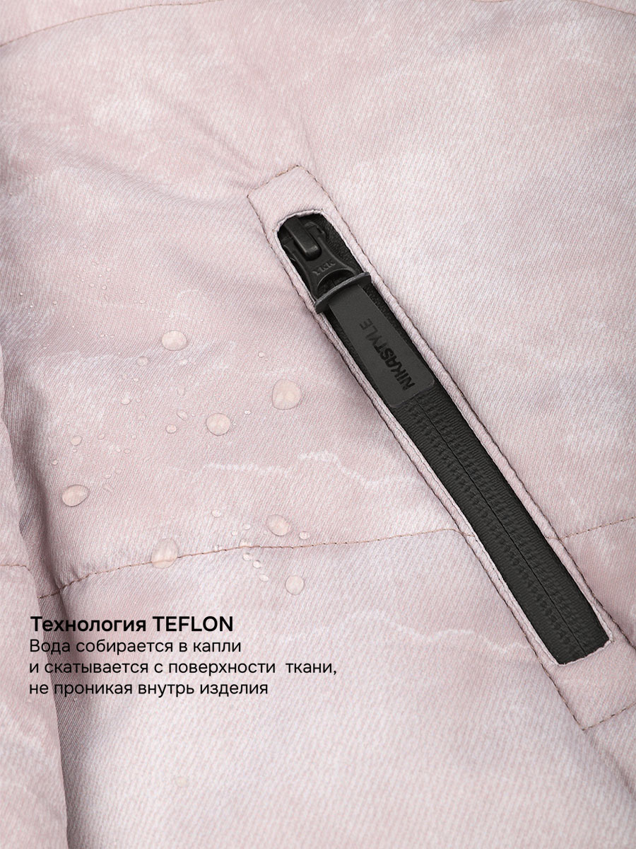 Мембранная ткань это непродуваемый и водонепроницаемый материал, который надежно защищает от ветра и влаги. Благодаря дышащим свойствам мембраны ребенку будет комфортно в любую погоду и он не вспотеет. Ткань обработана снаружи экологически чистым протектором TEFLON для защиты от воды и грязи.