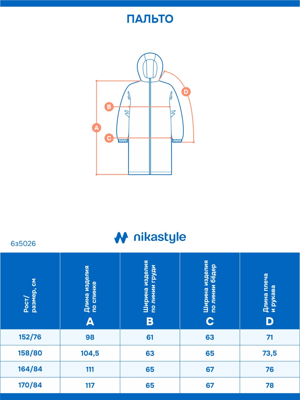 Заказываем одежду по предзаказу не первый раз, всегда довольны. Пальто, как и все предыдущие вещи, великолепное! На рост 143см заказали 146 размер, подошло отлично. Дочка любит вещи свободного кроя, ей пальто очень понравилось. Взяли еще шапку со снудом в комплект, с пальто смотрится очень стильно. Спасибо Никастайл за качественные вещи для детей!!!