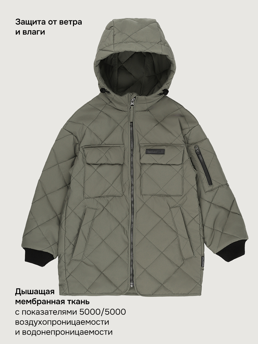 Удлиненная куртка УРБАН из стеганной мембранной ткани 5000/5000. Мембранная ткань - это непродуваемый и водонепроницаемый материал, который надежно защищает от ветра и влаги. Благодаря дышащим свойствам мембраны ребенку будет комфортно в любую погоду, и он не вспотеет. Мембрана в сочетании с утеплителем сохраняет тепло во время прогулок, позволяя телу дышать.