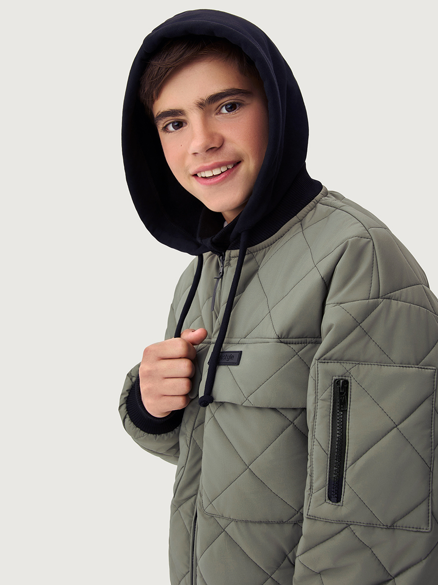 Мы все продумали до мелочей, поэтому манжет и горловина оформлены трикотажным подвязом, съемный капюшон из футера.
