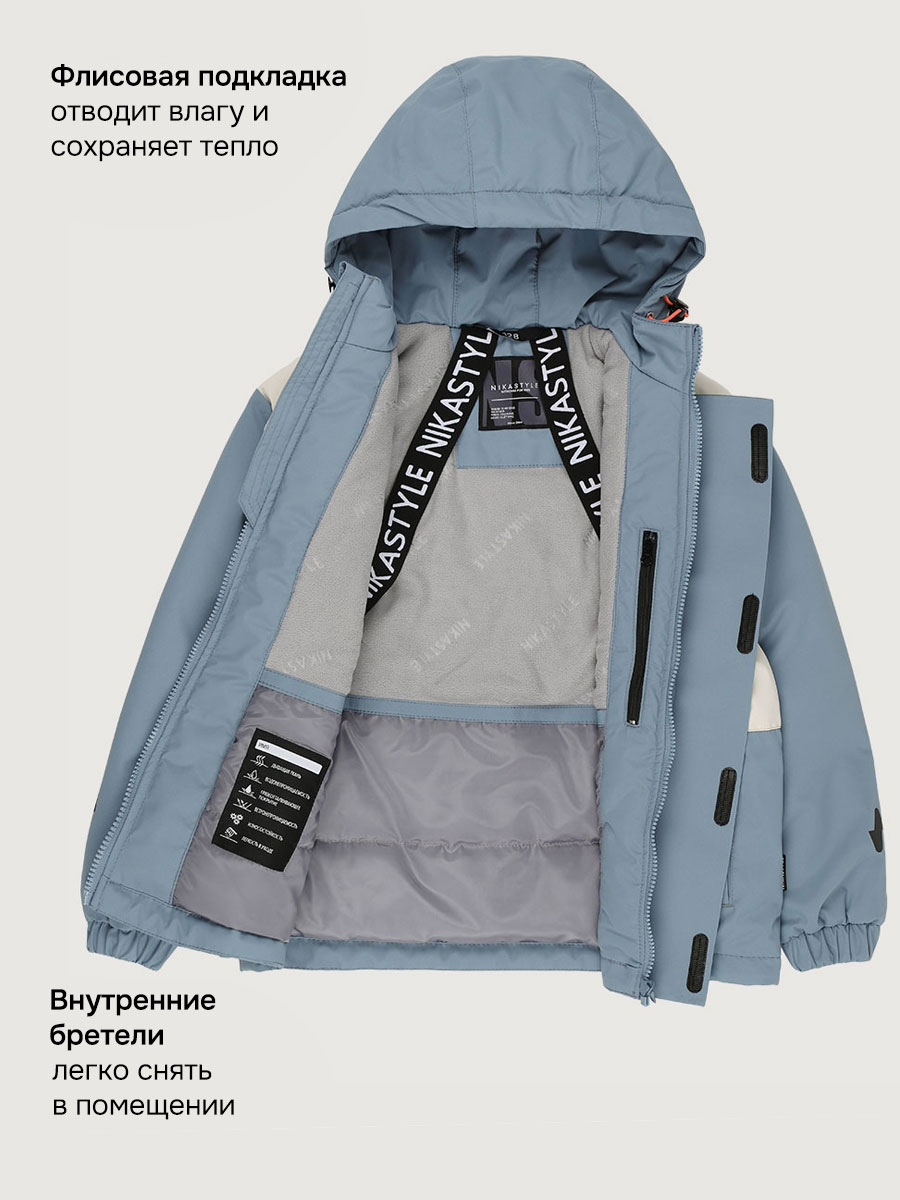 Куртка РИЛС из мембранной ткани 5000/5000. Мембранная ткань - это непродуваемый и водонепроницаемый материал, который надежно защищает от ветра и влаги. Благодаря дышащим свойствам мембраны ребенку будет комфортно в любую погоду, и он не вспотеет. Мембрана в сочетании с утеплителем нового поколения FIBERlite сохраняет тепло во время прогулок, позволяя телу дышать. Флисовая подкладка отводит влагу и имеет хорошие теплоизоляционные свойства.