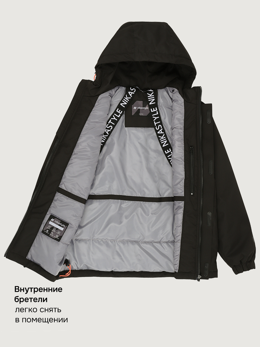 - внутренний карман на молнии, капюшон с кулисой для регулировки объема.