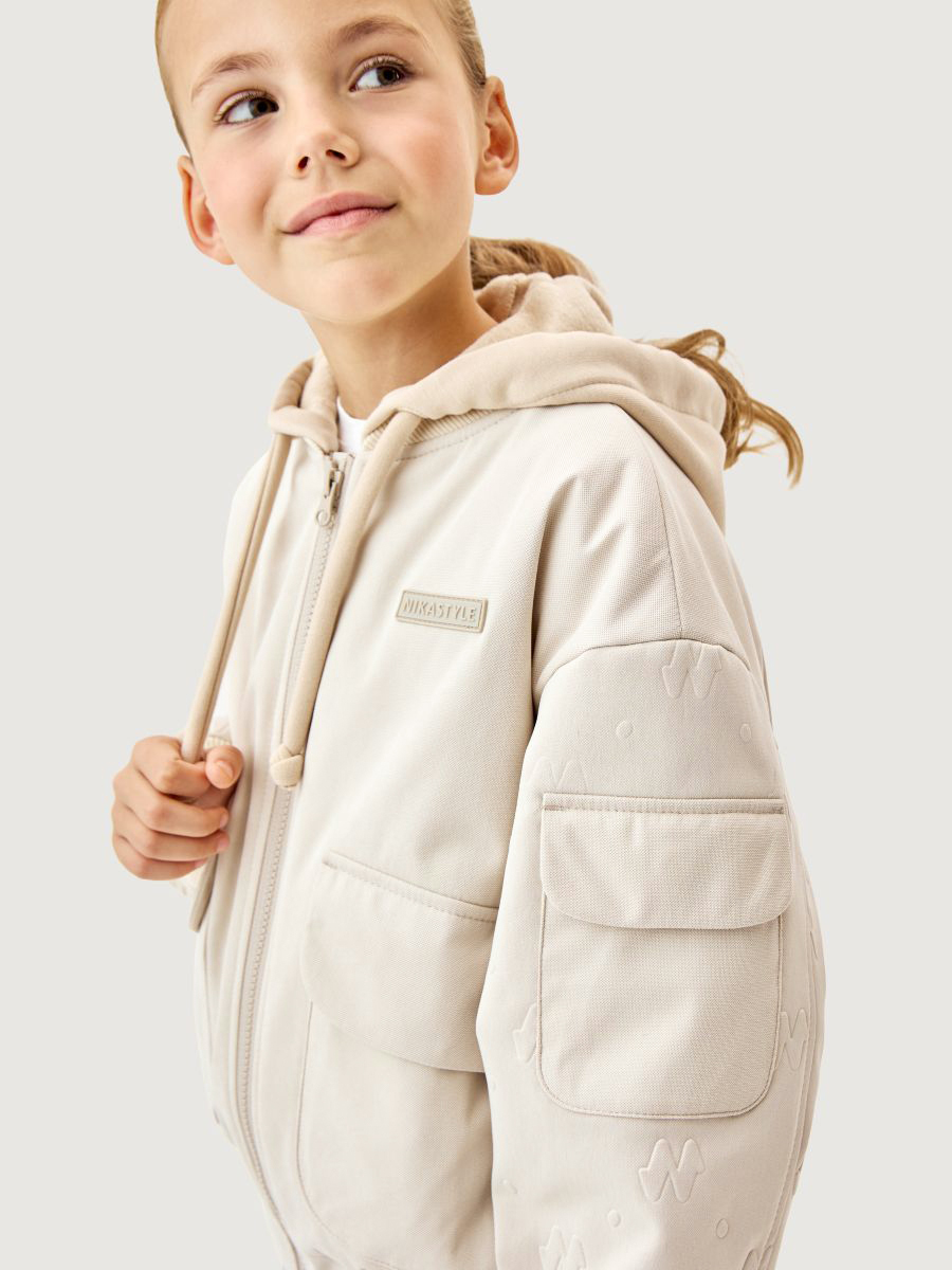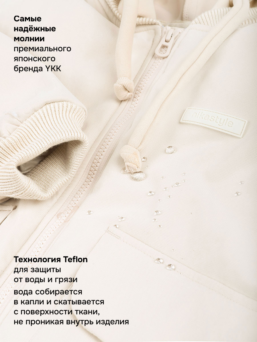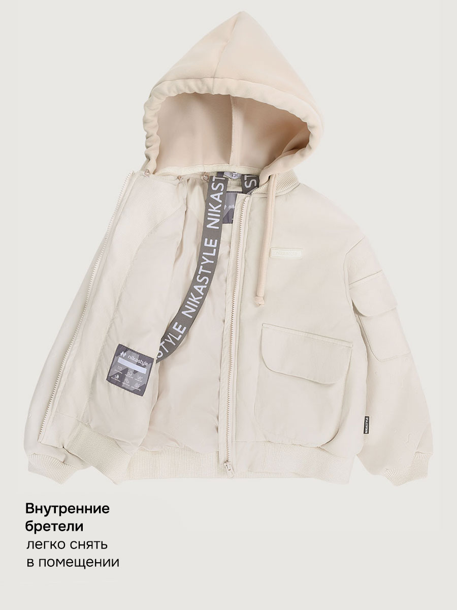 Мы все продумали до мелочей: манжет, горловина, низ оформлены трикотажным подвязом, съемный капюшон из футера, внутренние бретели для возможности снять куртку в помещении.