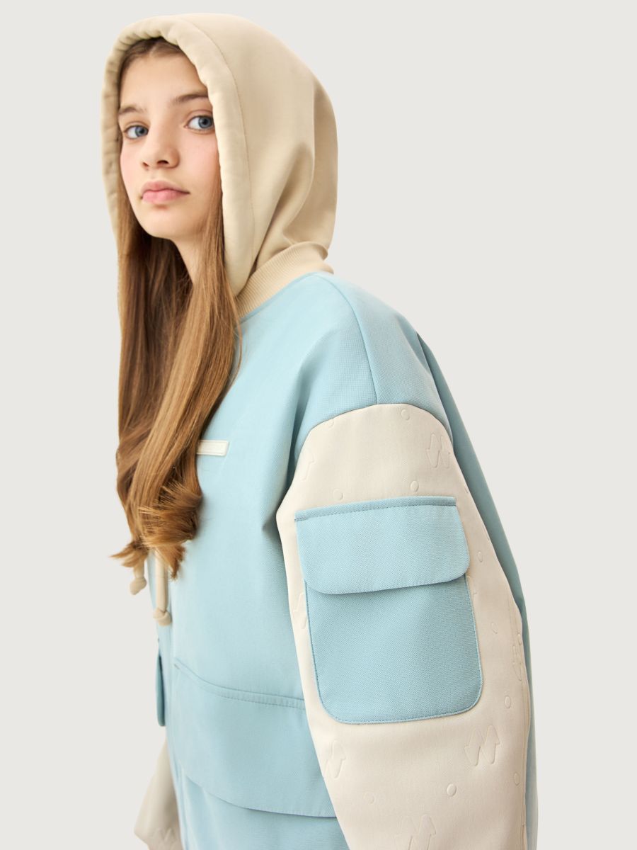 Мы все продумали до мелочей: манжет, горловина, низ оформлены трикотажным подвязом, съемный капюшон из футера, внутренние бретели для возможности снять куртку в помещении.