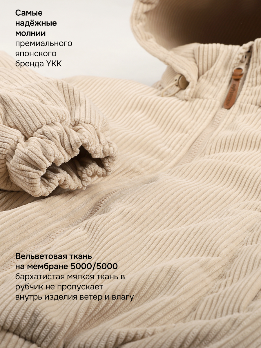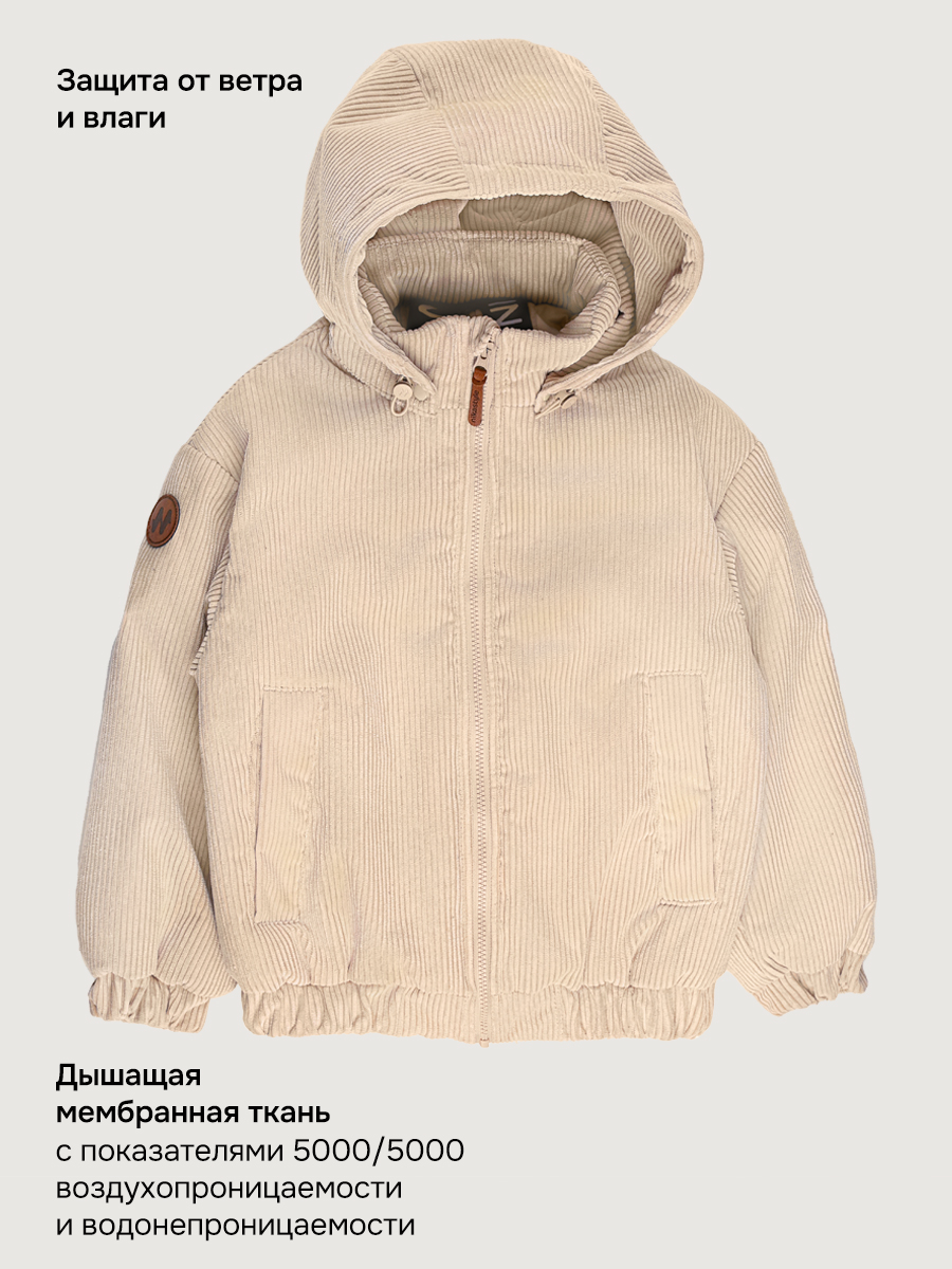 Куртка ОВЕР из вельветовой ткани на мембране 5000/5000. Мембранная ткань - это непродуваемый и водонепроницаемый материал, который надежно защищает от ветра и влаги. Благодаря дышащим свойствам мембраны ребенку будет комфортно в любую погоду, и он не вспотеет. С лицевой стороны ткань с бархатистой мягкой структурой в рубчик. Мембрана в сочетании с утеплителем нового поколения FIBERlite сохраняет тепло во время прогулок, позволяя телу дышать. Хлопковая подкладка обеспечит повышенный комфорт для ребенка.
