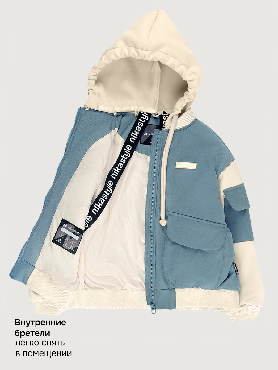 Мы все продумали до мелочей, пожтому у модели манжет, горловина, низ оформлены трикотажным подвязом, съемный капюшон из футера, внутренние бретели для возможности снять куртку в помещении.