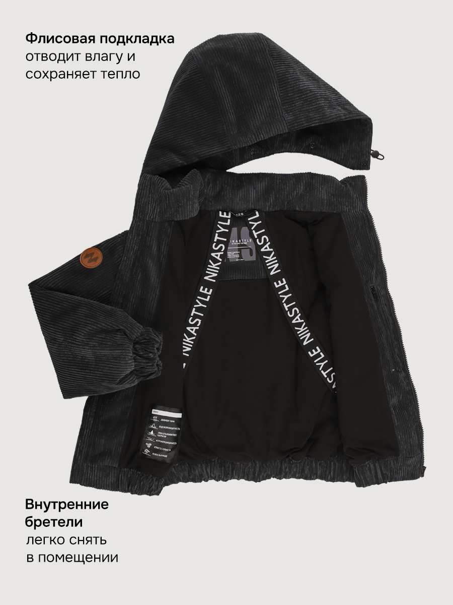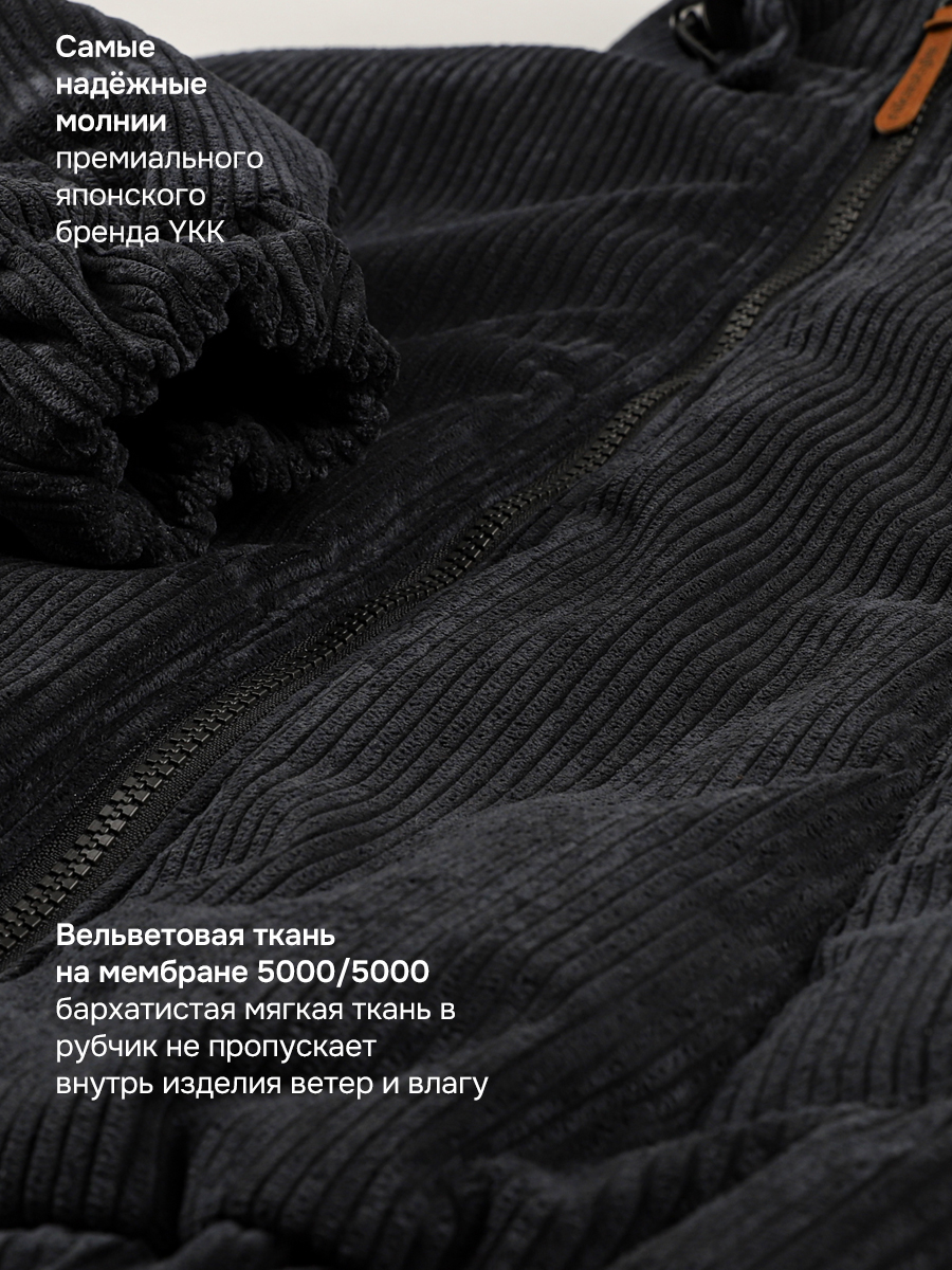 Куртка ОВЕР из вельветовой ткани на мембране 5000/5000. Мембранная ткань - это непродуваемый и водонепроницаемый материал, который надежно защищает от ветра и влаги. Благодаря дышащим свойствам мембраны ребенку будет комфортно в любую погоду, и он не вспотеет. С лицевой стороны ткань с бархатистой мягкой структурой в рубчик. Мембрана в сочетании с утеплителем нового поколения FIBERlite сохраняет тепло во время прогулок, позволяя телу дышать. Хлопковая подкладка обеспечит повышенный комфорт для ребенка.