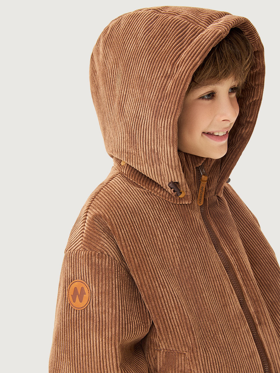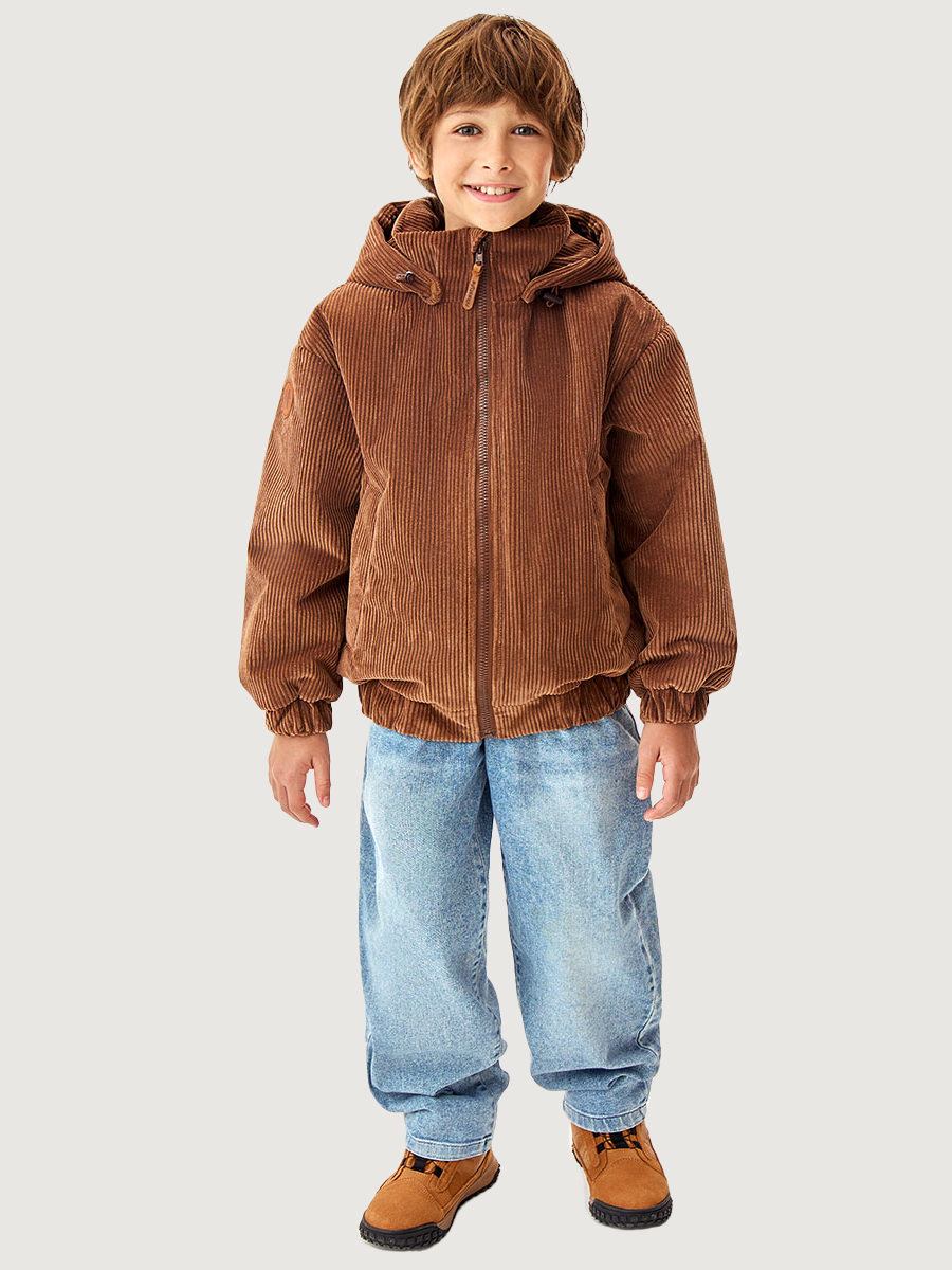 Куртка ОВЕР из вельветовой ткани на мембране 5000/5000. Мембранная ткань - это непродуваемый и водонепроницаемый материал, который надежно защищает от ветра и влаги. Благодаря дышащим свойствам мембраны ребенку будет комфортно в любую погоду, и он не вспотеет. С лицевой стороны ткань с бархатистой мягкой структурой в рубчик. Мембрана в сочетании с утеплителем нового поколения FIBERlite сохраняет тепло во время прогулок, позволяя телу дышать. Хлопковая подкладка обеспечит повышенный комфорт для ребенка.