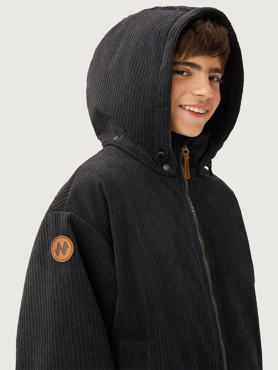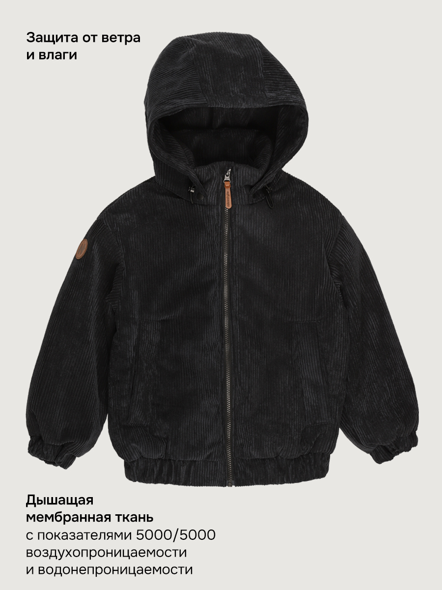 Куртка ОВЕР извельветовой ткани на мембране 5000/5000. Мембранная ткань - это непродуваемый и водонепроницаемый материал, который надежно защищает от ветра и влаги. Благодаря дышащим свойствам мембраны ребенку будет комфортно в любую погоду, и он не вспотеет. С лицевой стороны ткань с бархатистой мягкой структурой в рубчик. Мембрана в сочетании с утеплителем нового поколения FIBERlite сохраняет тепло во время прогулок, позволяя телу дышать. Хлопковая подкладка обеспечит повышенный комфорт для ребенка.