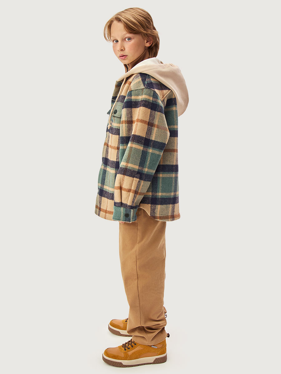 Куртка-рубашка КАМПУС в клетку из пальтовой ткани дублированной мехом. Пальтовая ткань с мягкой ворсистой фактурой, приятная на ощупь. Мех-барашек с изнаночной стороны обеспечивает защиту от холода и дарит ощущение тепла и уюта. Свободный прямой крой со спущенной линией плеча не сковывает движение и создает максимальный комфорт в носке.