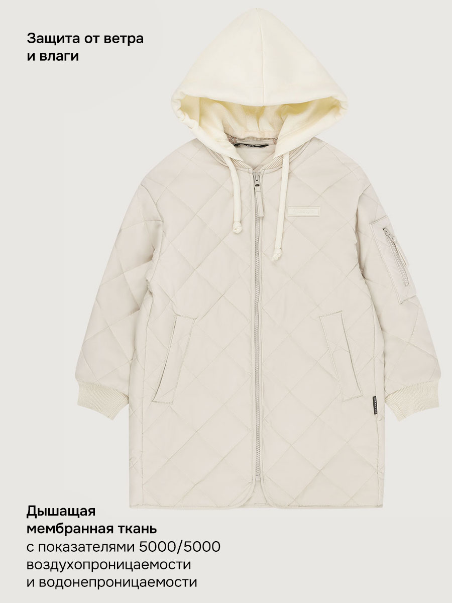 Удлиненная куртка ЛАЙК из стеганной мембранной ткани 5000/5000. Мембранная ткань - это непродуваемый и водонепроницаемый материал, который надежно защищает от ветра и влаги. Благодаря дышащим свойствам мембраны ребенку будет комфортно в любую погоду, и он не вспотеет. Мембрана в сочетании с утеплителем сохраняет тепло во время прогулок, позволяя телу дышать.