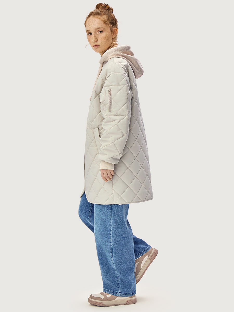 Удлиненная куртка ЛАЙК из стеганной мембранной ткани 5000/5000. Мембранная ткань - это непродуваемый и водонепроницаемый материал, который надежно защищает от ветра и влаги. Благодаря дышащим свойствам мембраны ребенку будет комфортно в любую погоду, и он не вспотеет. Мембрана в сочетании с утеплителем сохраняет тепло во время прогулок, позволяя телу дышать.