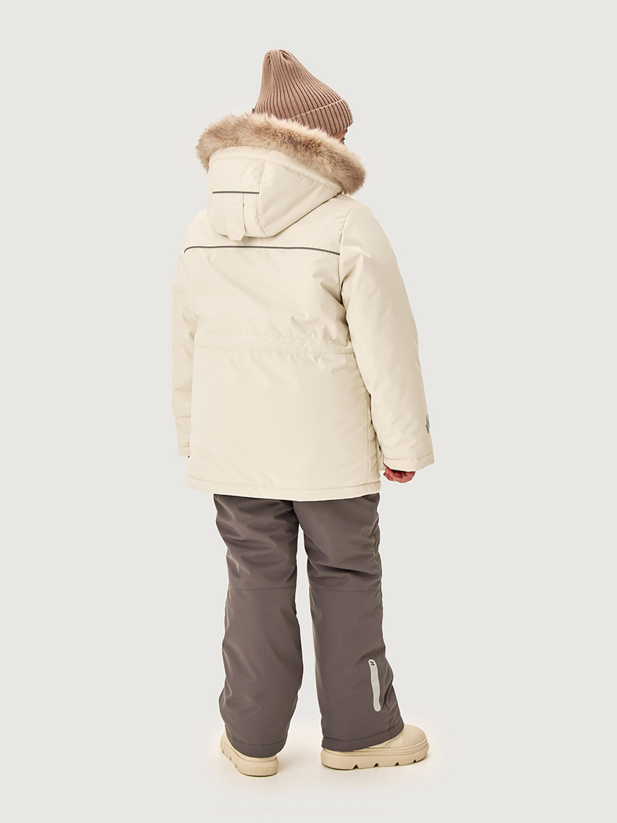 Функционал: центральная застежка на молнии, накладные карманы с клапаном на липах, внутренний карман на молнии, ветрозащитная планка, съемный капюшон и меховая опушка на молнии, кулиса для регулировки объема по капюшону и по талии, трикотажные манжеты в рукавах, внутренние бретели для возможности снять куртку в помещении. Мы все продумали до мелочей, поэтому брюки дополнительно оснащены регулируемыми бретелями, удобными карманами, резинка по талии, застежка на молнию и кнопку. Область колен и шов сидения проклеены, места повышенного трения выполнены из особо прочной ткани, снегозащитные муфты, флисовая подкладка до середины бедра, светоотражающие элементы для безопасности ребенка в темное время суток. Комфортная температура эксплуатации от 0°С до -25° С.