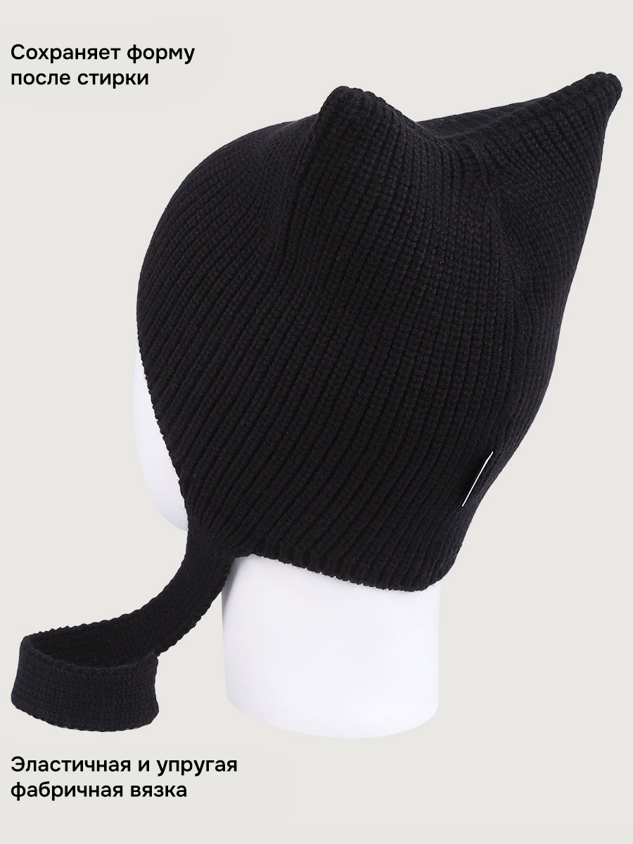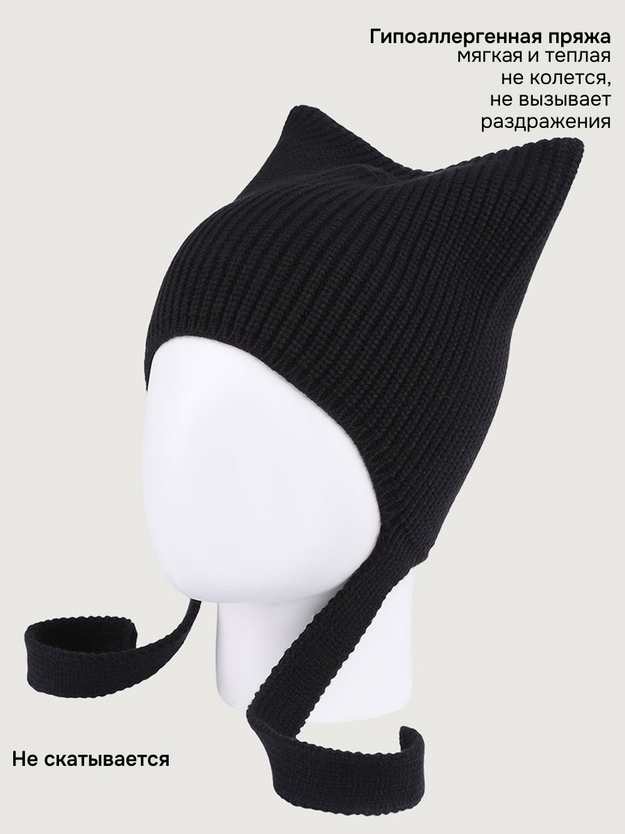 Шапка КЭТ из вискозной пряжи с завязками. Забавные ушки на шапке сделают образ вашей девочки милым и привлекательным.
