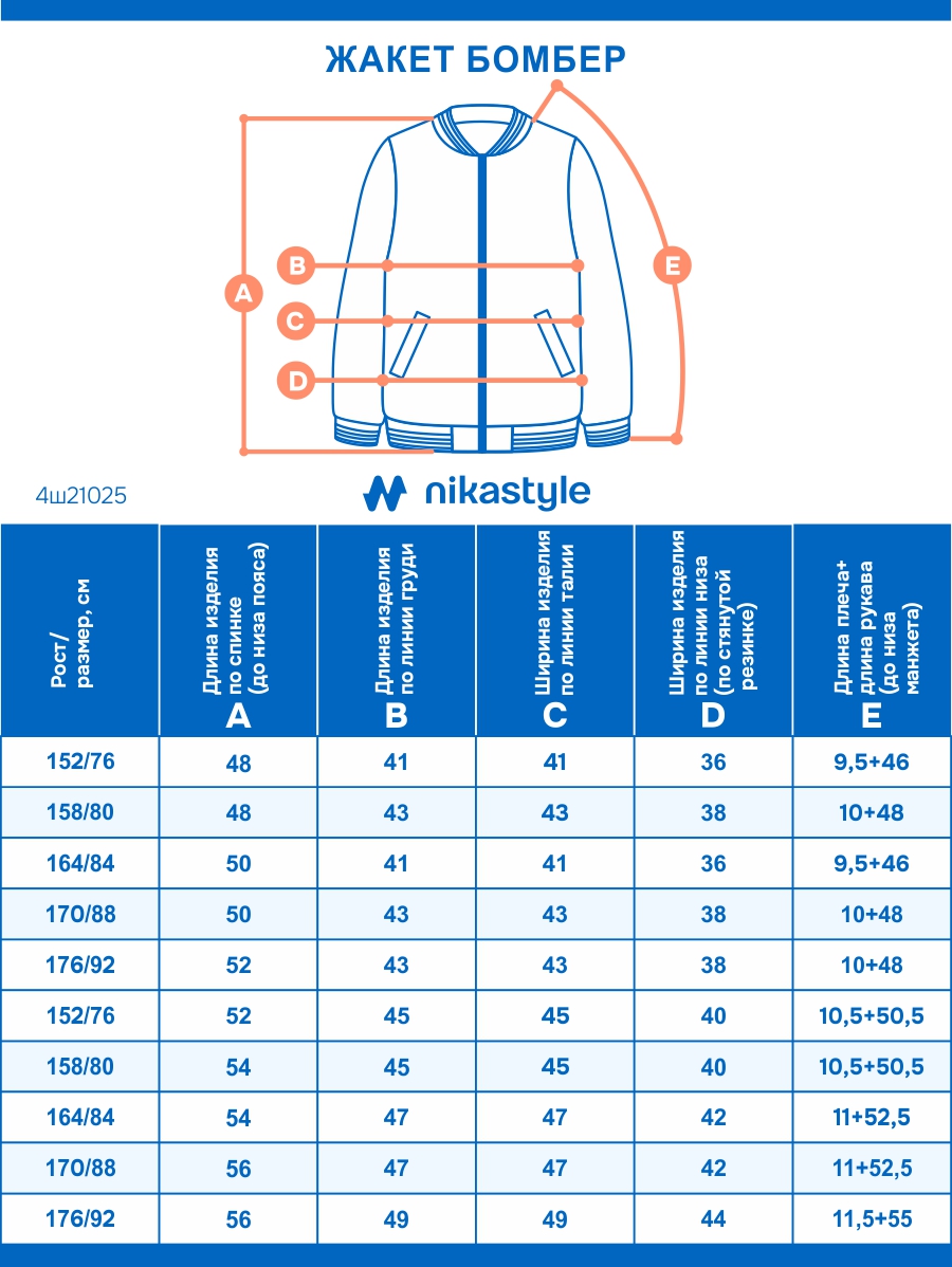 Бомберы представлены в каждом росте двумя размерами.