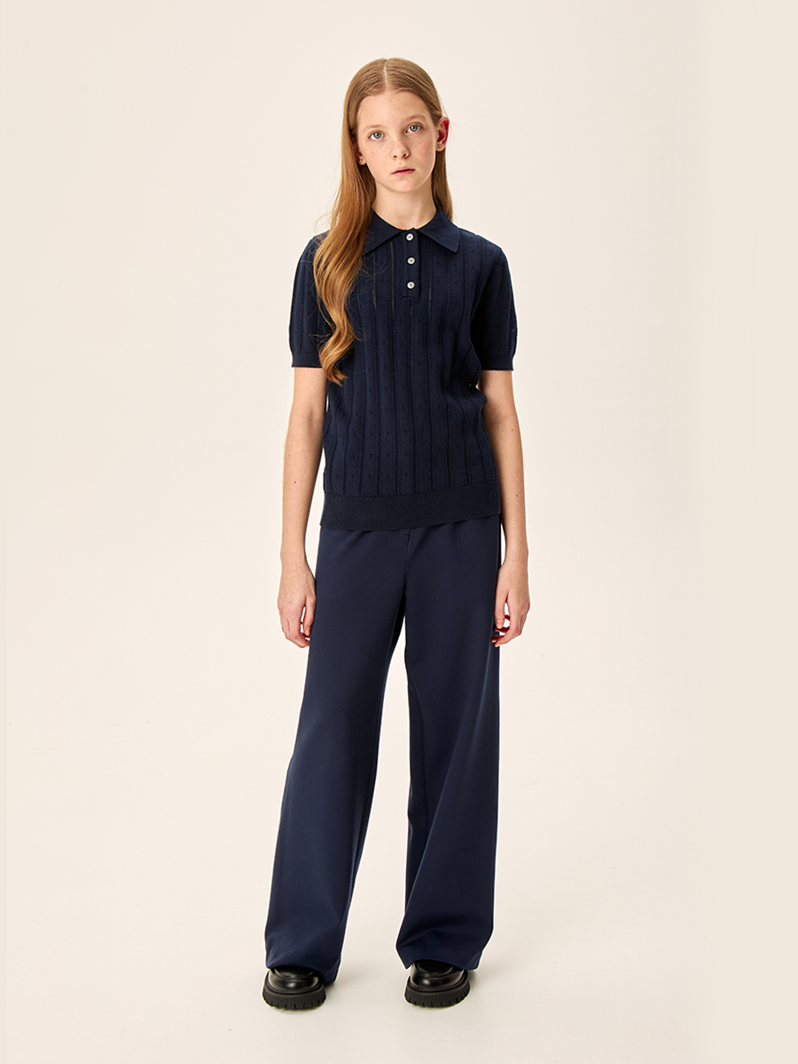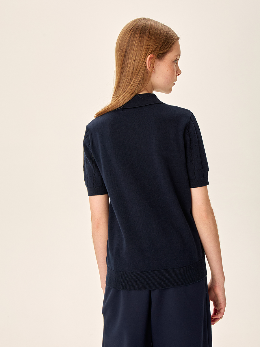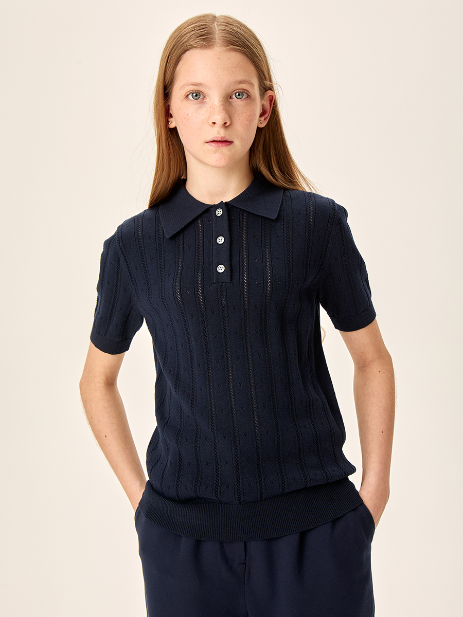 вязаный джемпер с воротником поло для девочки сочетает в себе стильный дизайн и максимальный комфорт для ребенка. Изготовлен из мягкого хлопка, что обеспечивает комфорт в течение всего дня.
