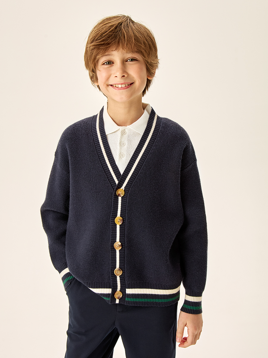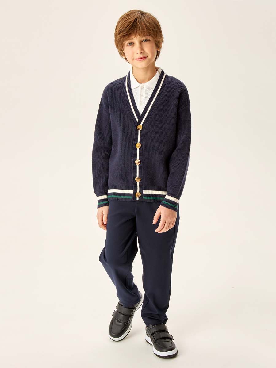 Кардиган для мальчика сочетает в себе стильный дизайн и максимальный комфорт для ребенка. Изготовлен из нежного и мягкого вязаного трикотажа, что обеспечивает комфорт в течение всего дня.