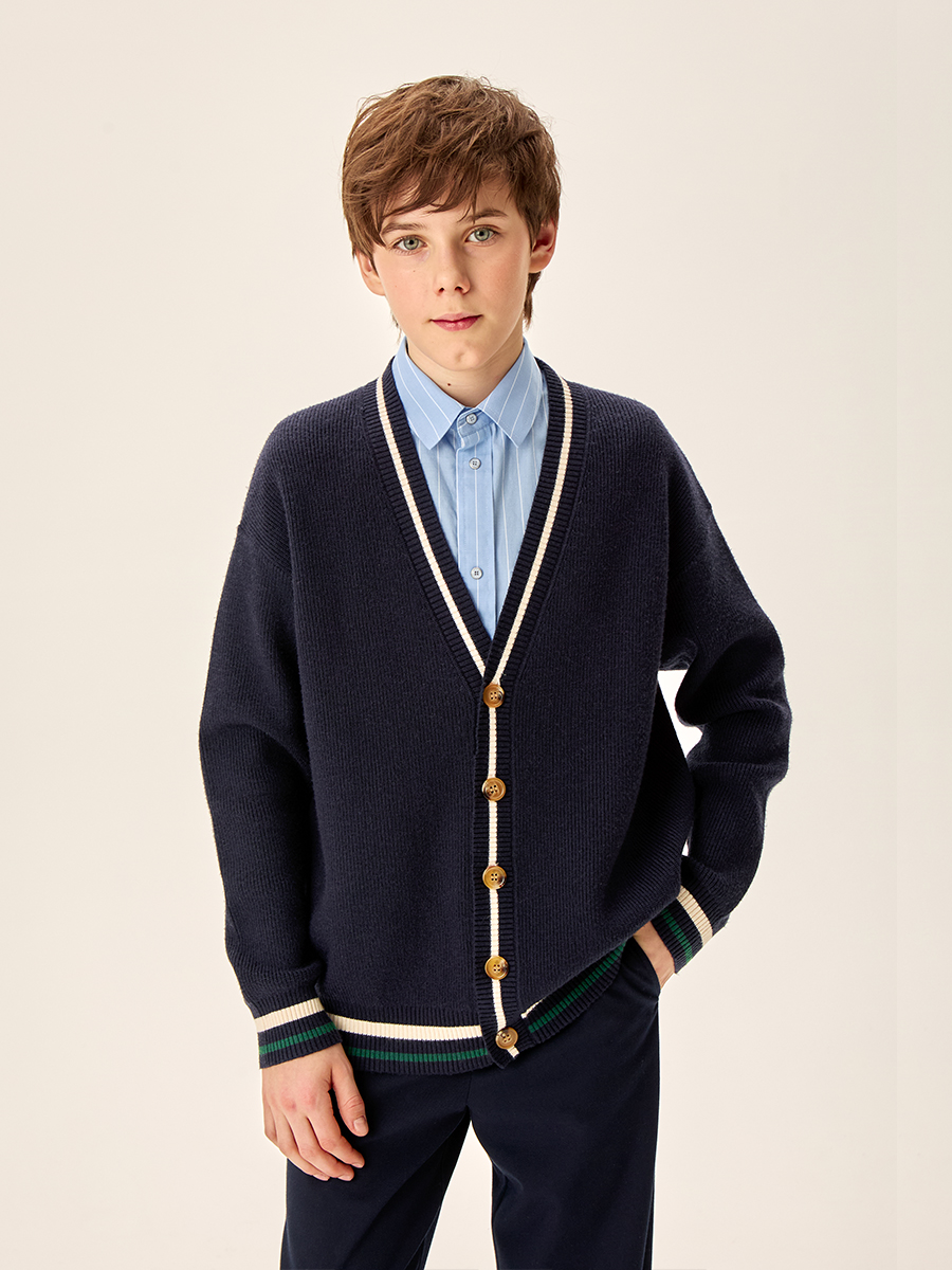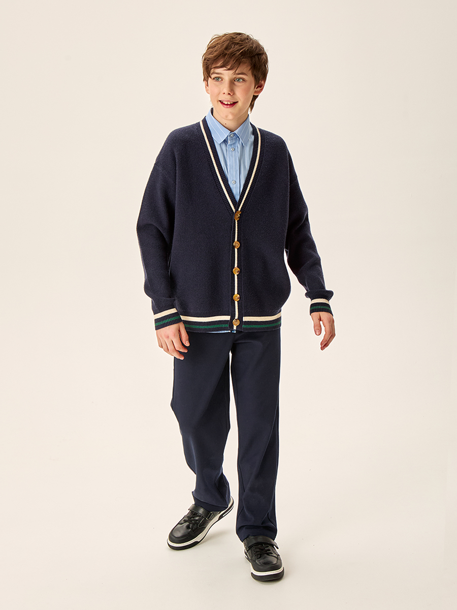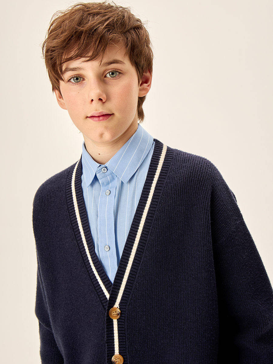 Кардиган для мальчика сочетает в себе стильный дизайн и максимальный комфорт для ребенка. Изготовлен из нежного и мягкого вязаного трикотажа, что обеспечивает комфорт в течение всего дня.