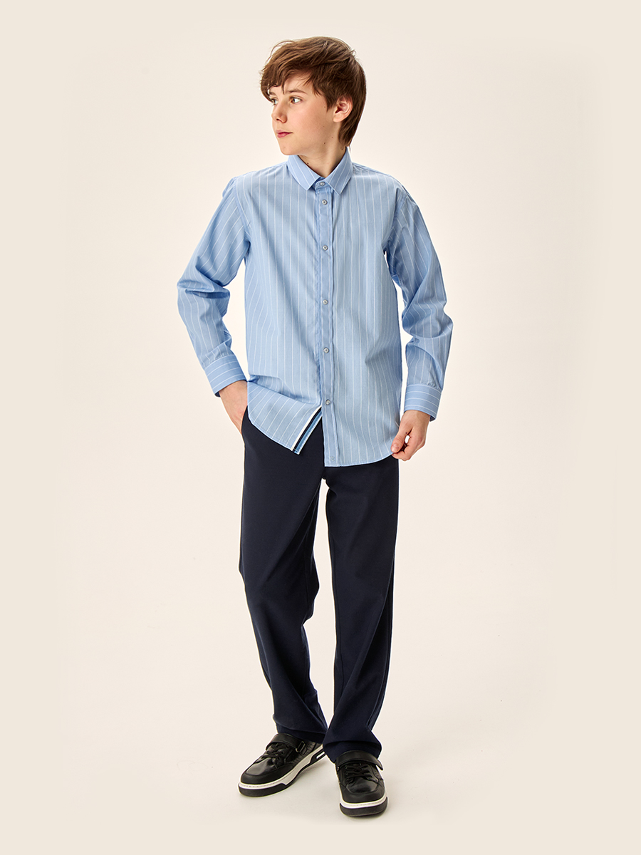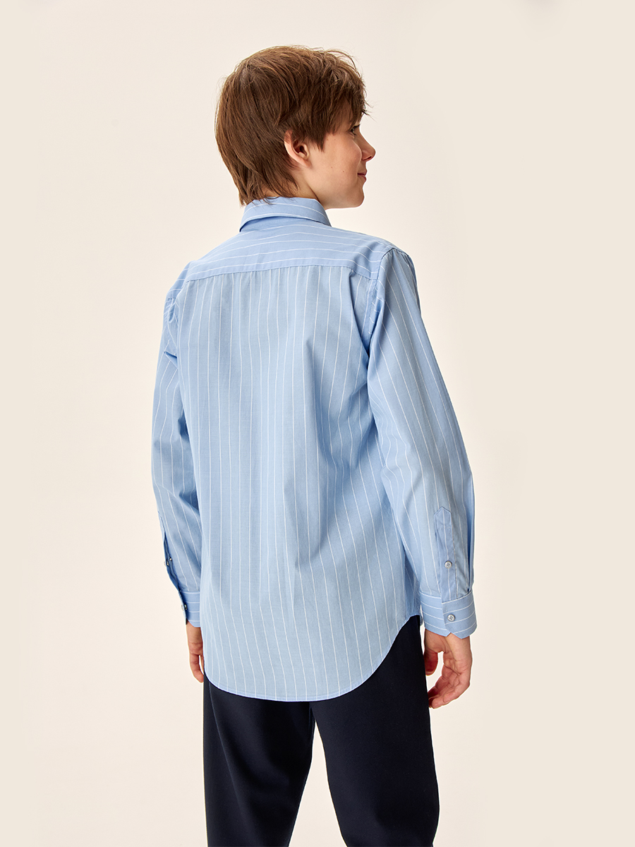Классическая рубашка с длинным рукавом - базовый предмет гардероба для школьника. Приятный к телу хлопковый материал хорошо держит форму, обеспечивает мягкость, комфорт и воздухопроницаемость изделия. А добавление в ткани синтетических волокон позволяет сохранить презентабельный внешний вид изделия после частых стирок.