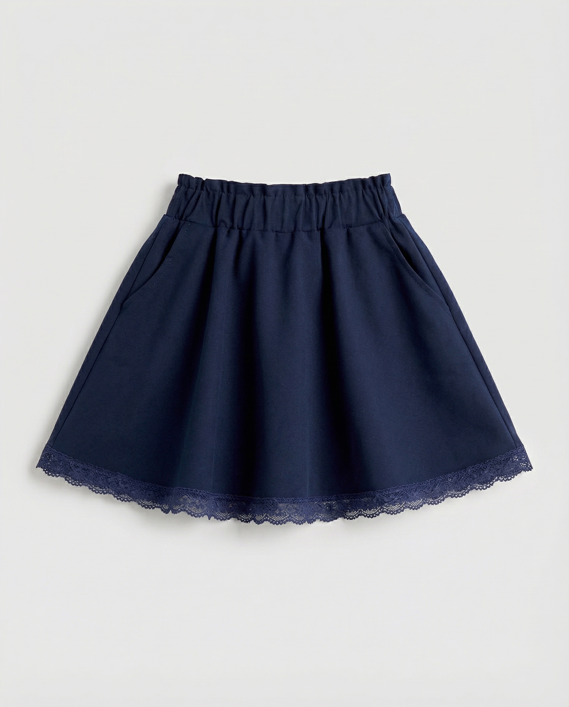 Мы все продумали до мелочей, поэтому верхняя часть пояса с имитацией оборки, нижний край юбки украшен притачным кружевом.