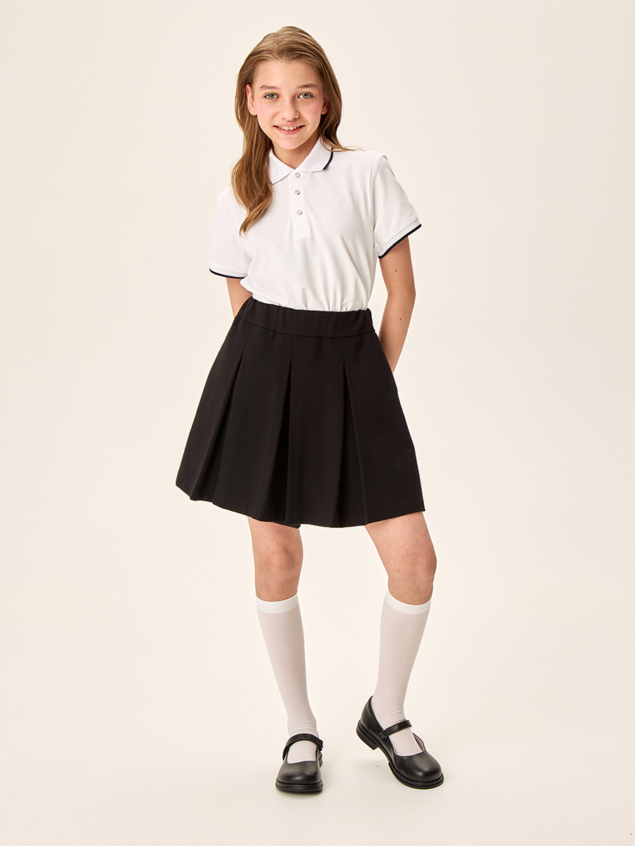 Выполнена из прочной, качественной костюмной ткани с содержанием вискозы и добавлением эластана, не мнется и обеспечивает удобство. Модель подходит для повседневной носки, а также на школьные мероприятия и выступления.
