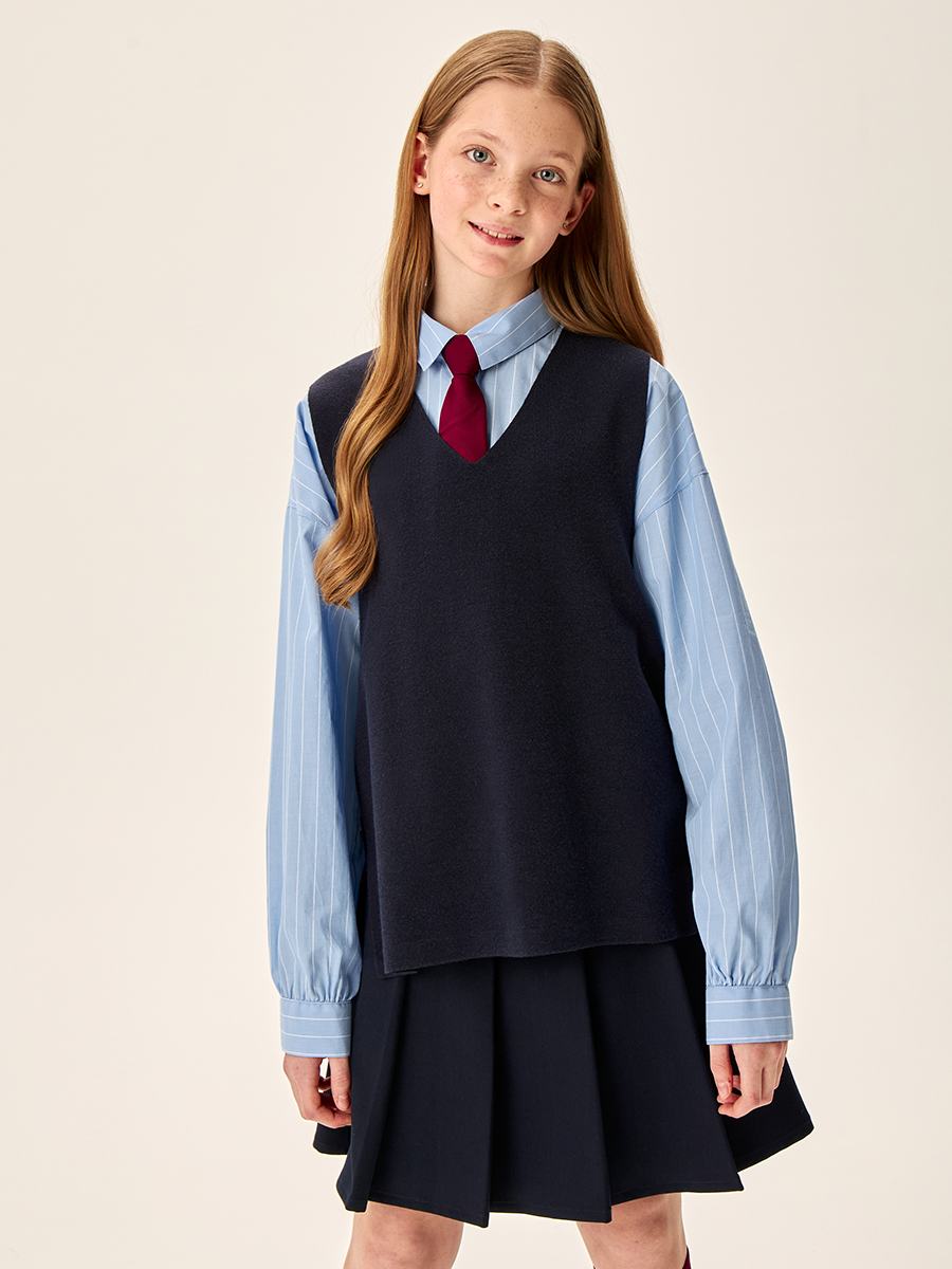 Жилет для девочки сочетает в себе стильный дизайн и максимальный комфорт для ребенка. Изготовлена из нежного и мягкого вязаного трикотажа, что обеспечивает комфорт в течение всего дня.