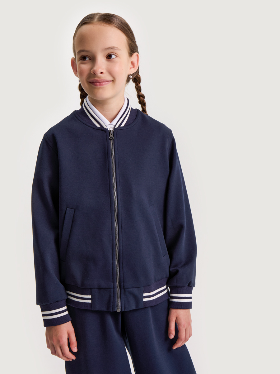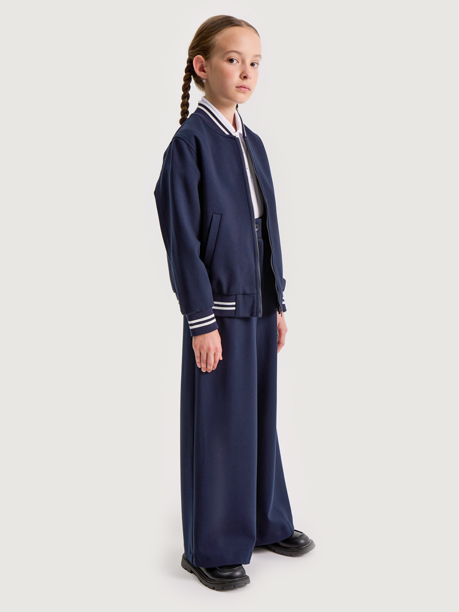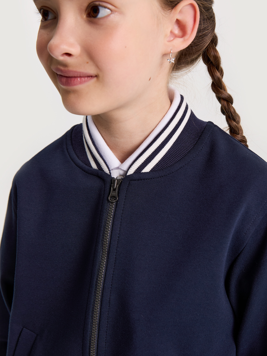 Бомбер можно носить самостоятельно или собрать костюм из нашей школьной коллекции, дополнив образ брюками или юбкой-шортами. Такой комплект будет идеальным выбором для школьной формы.