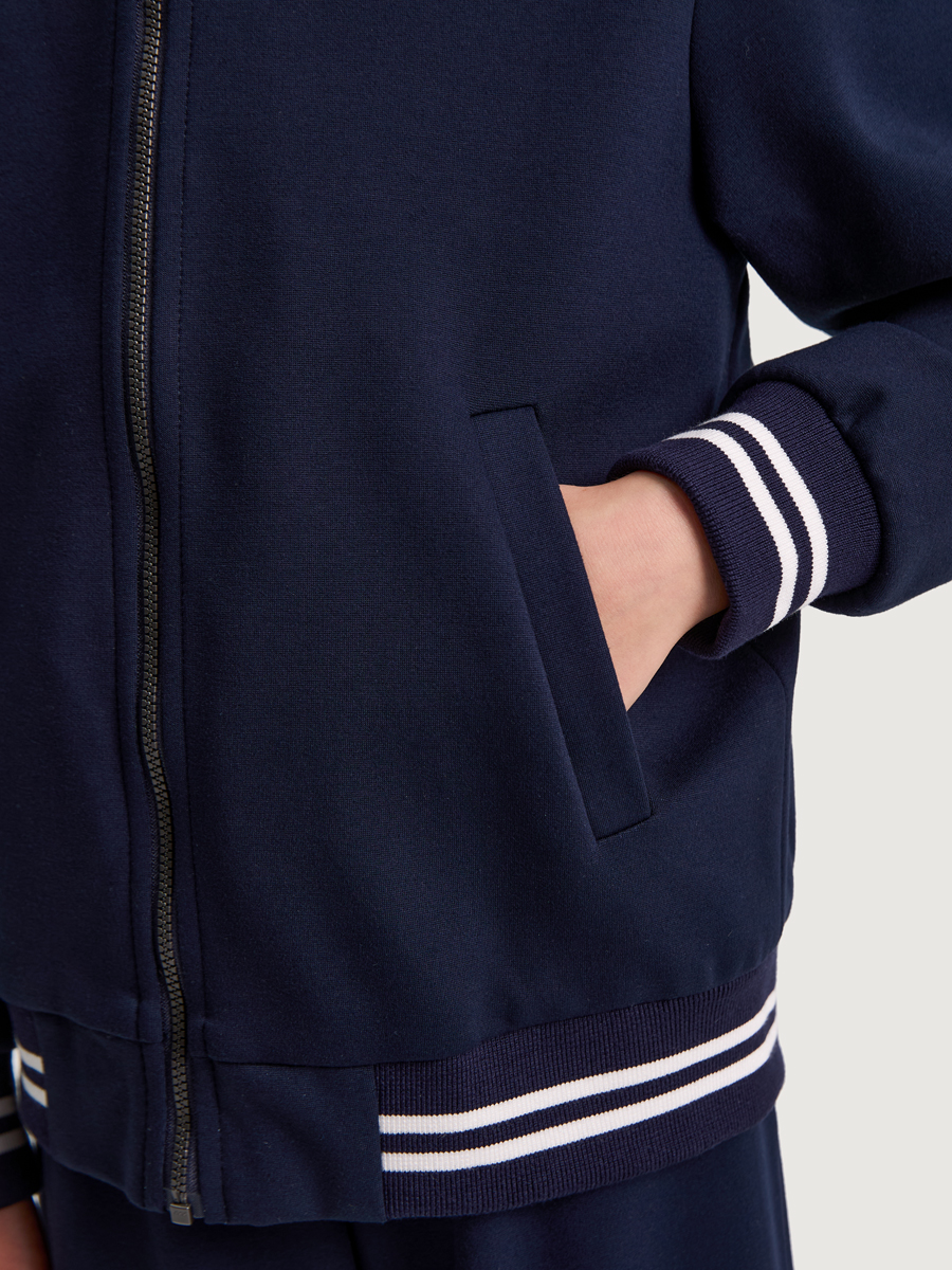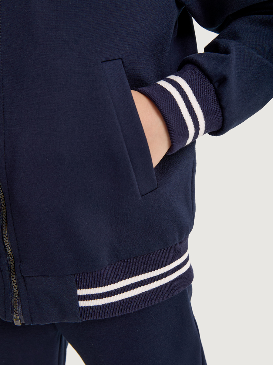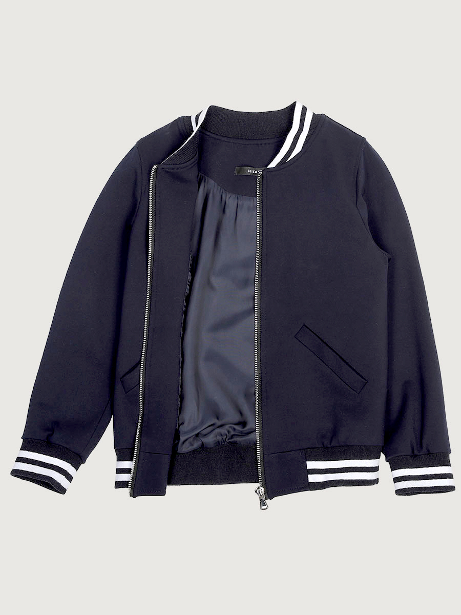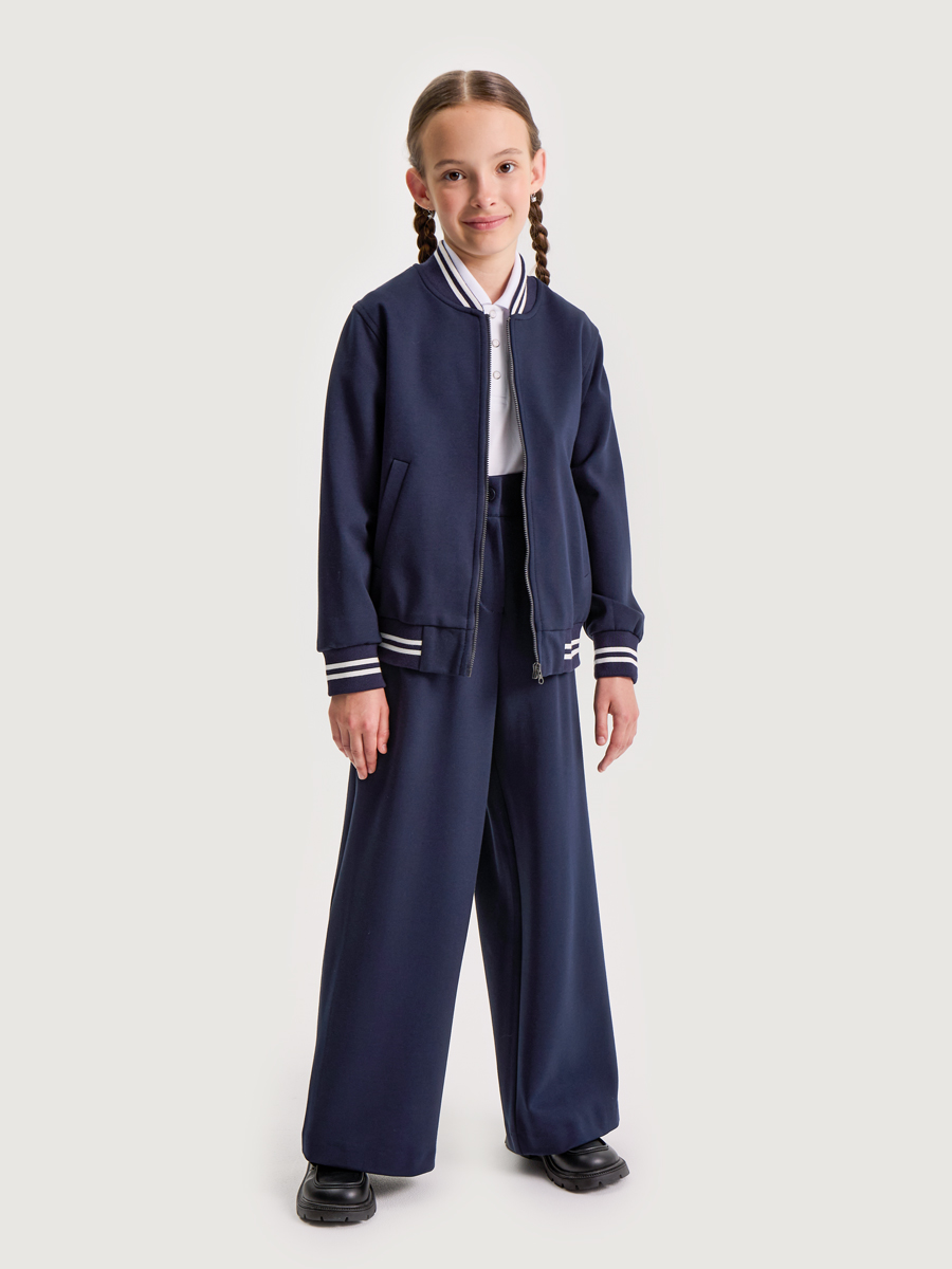 Бомбер можно носить самостоятельно или собрать костюм из нашей школьной коллекции, дополнив образ брюками или юбкой-шортами. Такой комплект будет идеальным выбором для школьной формы.