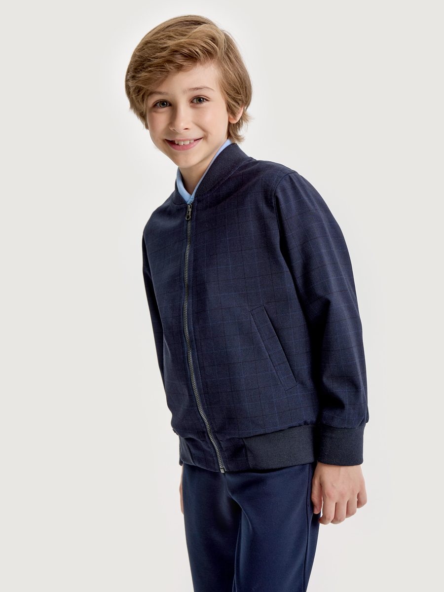 Жакет-бомбер 4ш21025 синяя клетка