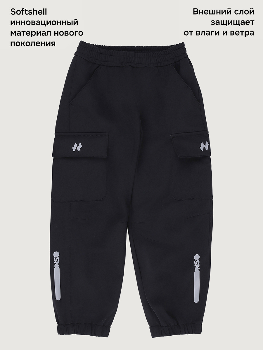 Брюки КАРГО из Softshell идеально подходят активным детям на прогулках, которые много двигаются и не сидят на месте. Softshell - это инновационный материал нового поколения, внешний слой которого защищает от влаги и ветра, внутренний слой из флиса сохраняет тепло и отводит лишнюю влагу, а промежуточный мембранный слой имеет хорошую паропроницаемость и позволяет коже дышать. Softshell приятный на ощупь, легкий и эластичный материал, не сковывающий движения ребенка.