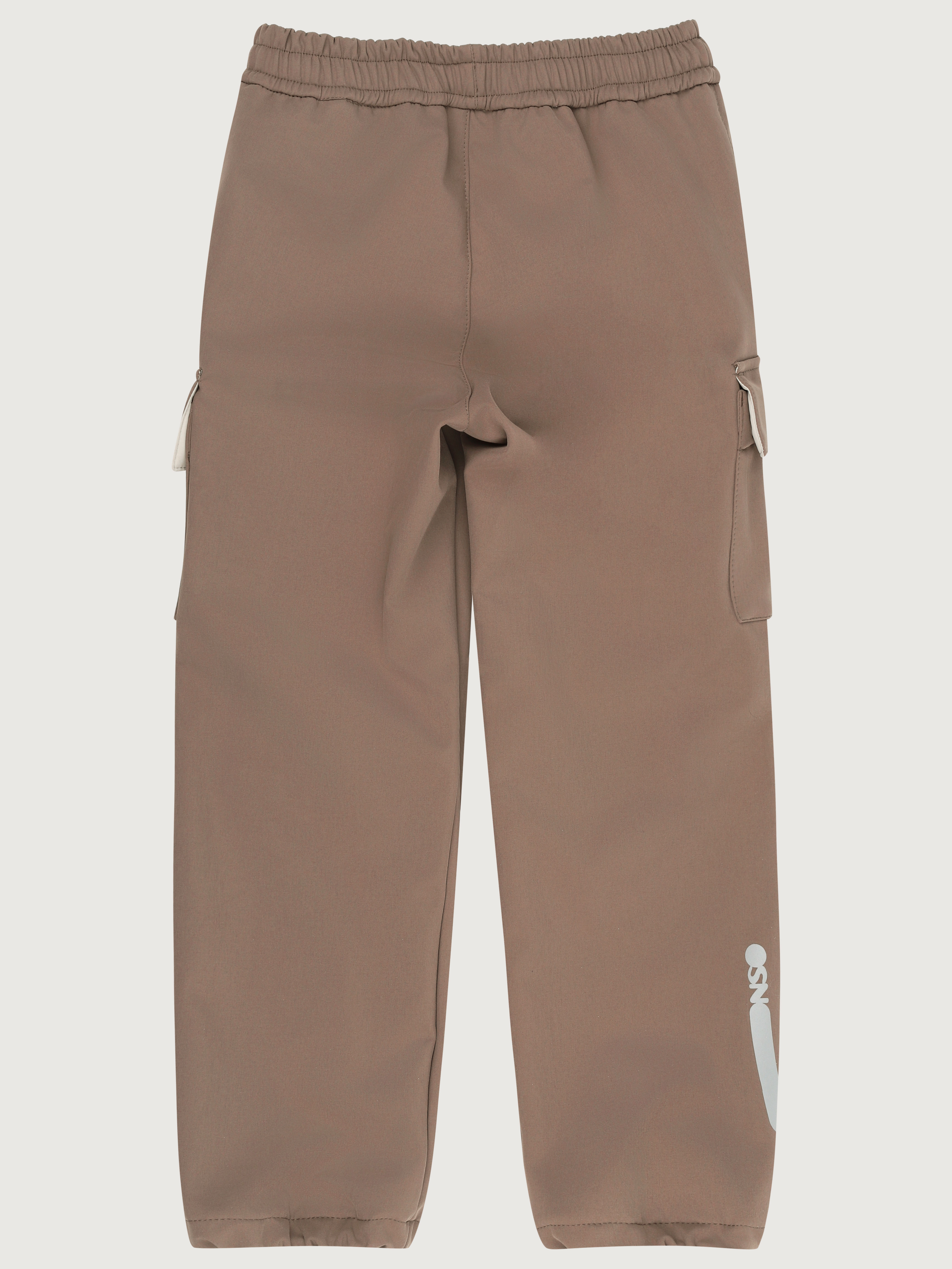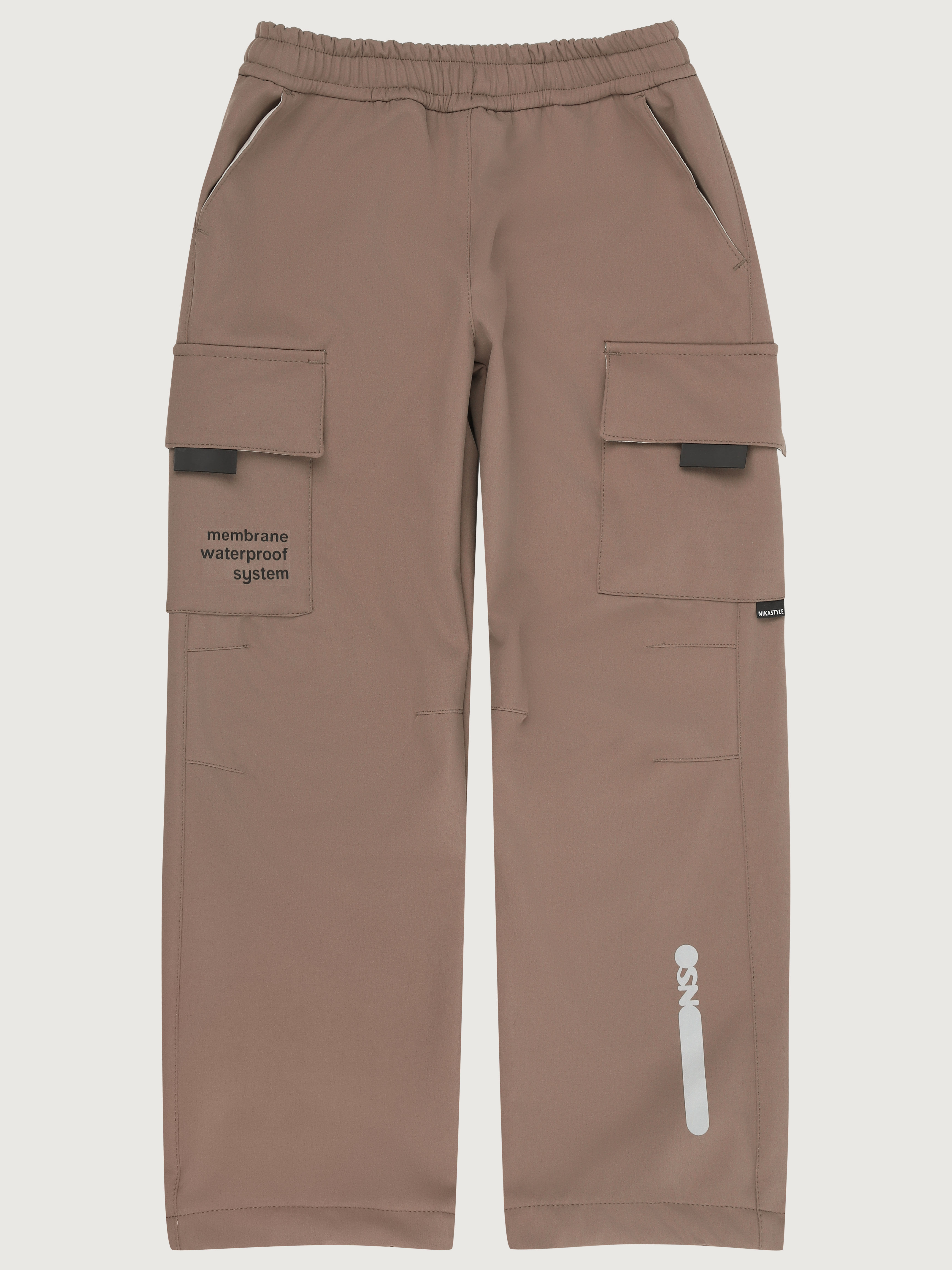 Брюки КАРГО из Softshell идеально подходят активным детям на прогулках, которые много двигаются и не сидят на месте. Softshell - это инновационный материал нового поколения, внешний слой которого защищает от влаги и ветра, внутренний слой из флиса сохраняет тепло и отводит лишнюю влагу, а промежуточный мембранный слой имеет хорошую паропроницаемость и позволяет коже дышать. Softshell приятный на ощупь, легкий и эластичный материал, не сковывающий движения ребенка.