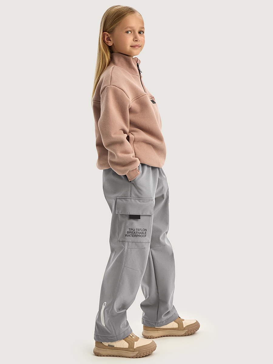 Брюки КАРГО из Softshell идеально подходят активным детям на прогулках, которые много двигаются и не сидят на месте. Softshell - это инновационный материал нового поколения, внешний слой которого защищает от влаги и ветра, внутренний слой из флиса сохраняет тепло и отводит лишнюю влагу, а промежуточный мембранный слой имеет хорошую паропроницаемость и позволяет коже дышать. Softshell приятный на ощупь, легкий и эластичный материал, не сковывающий движения ребенка.