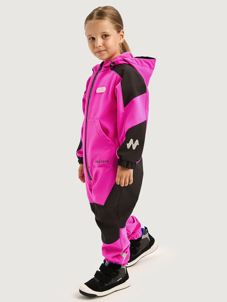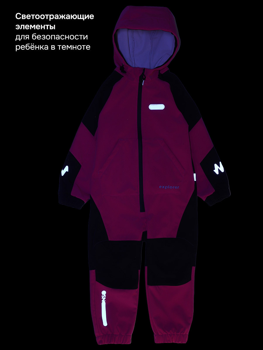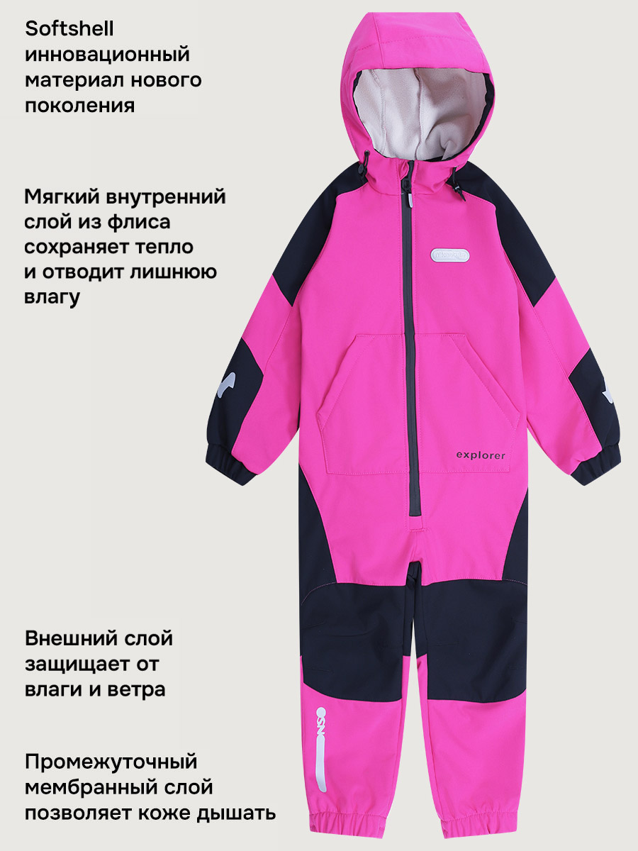 Комбинезоны ТРЕКИНГ из Softshell идеально подходят активным детям на прогулках, которые много двигаются и не сидят на месте. Softshell - это инновационный материал нового поколения, внешний слой которого защищает от влаги и ветра, внутренний слой из флиса сохраняет тепло и отводит лишнюю влагу, а промежуточный мембранный слой имеет хорошую паропроницаемость и позволяет коже дышать. Softshell приятный на ощупь, легкий и эластичный материал, не сковывающий движения ребенка.