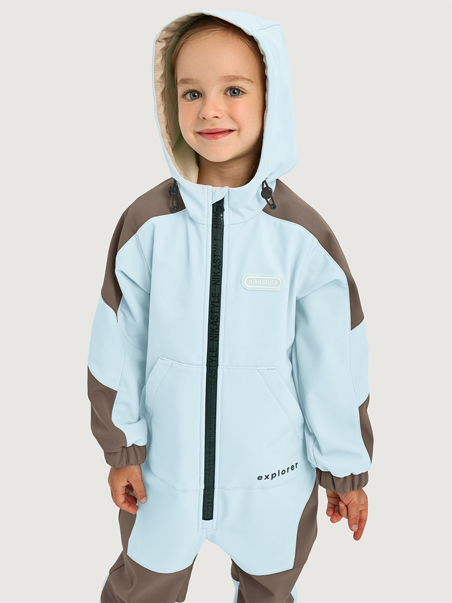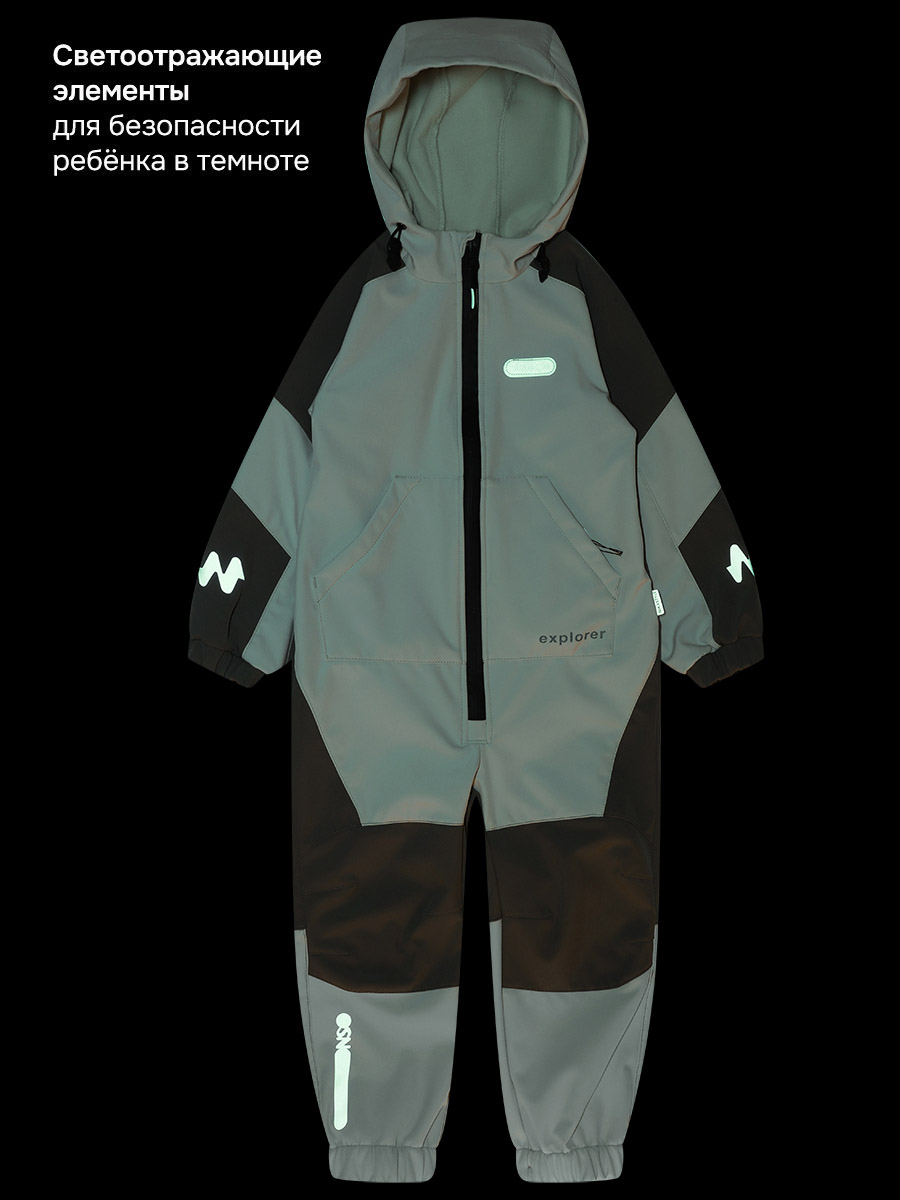 Комбинезоны ТРЕКИНГ из Softshell идеально подходят активным детям на прогулках, которые много двигаются и не сидят на месте. Softshell - это инновационный материал нового поколения, внешний слой которого защищает от влаги и ветра, внутренний слой из флиса сохраняет тепло и отводит лишнюю влагу, а промежуточный мембранный слой имеет хорошую паропроницаемость и позволяет коже дышать. Softshell приятный на ощупь, легкий и эластичный материал, не сковывающий движения ребенка.