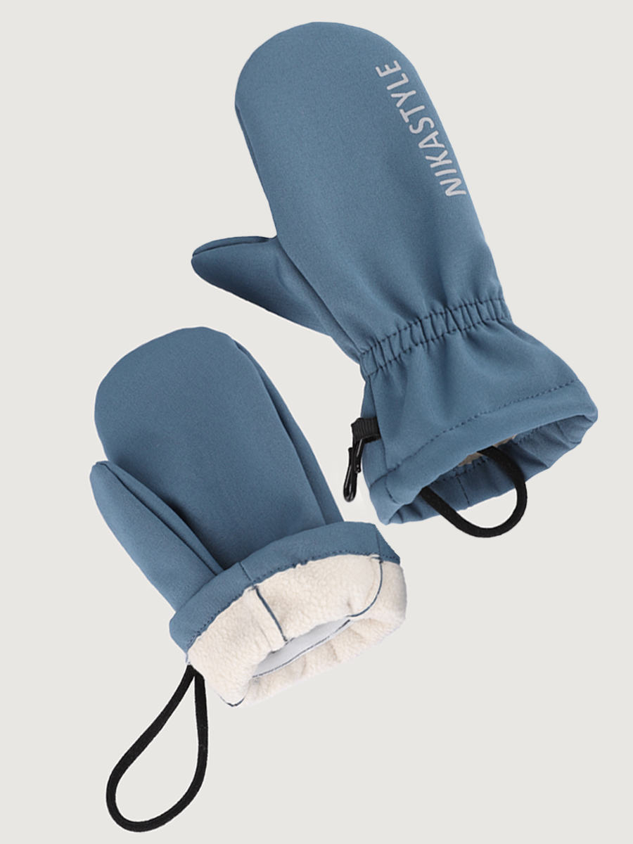 Варежки из Softshell с резинкой на запястье. Softshell - это инновационный материал нового поколения, внешний слой которого защищает от влаги, внутренний слой из флиса сохраняет тепло и отводит лишнюю влагу, а промежуточный мембранный слой имеет хорошую паропроницаемость и позволяет коже дышать. Softshell приятный на ощупь, легкий и эластичный материал, не сковывающий движения ребенка.